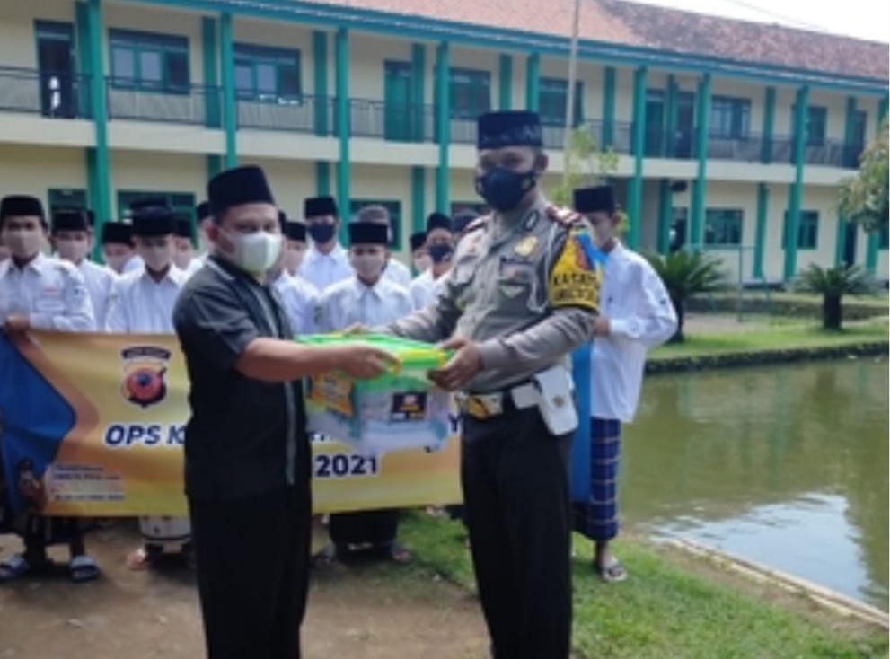 Berita Polres Majalengka–Satlantas Polres Majalengka, Polda Jawa Barat, kembali menggelar Bakti Sosial (Baksos) dengan membagikan paket sembako dan bahan pokok lainnya, di Pondok Pesantren (Ponpes) Sobharul Yaqien, Desa Kawunggirang, Kecamatan/Kabupaten Majalengka, Sabtu (24/4/2021).