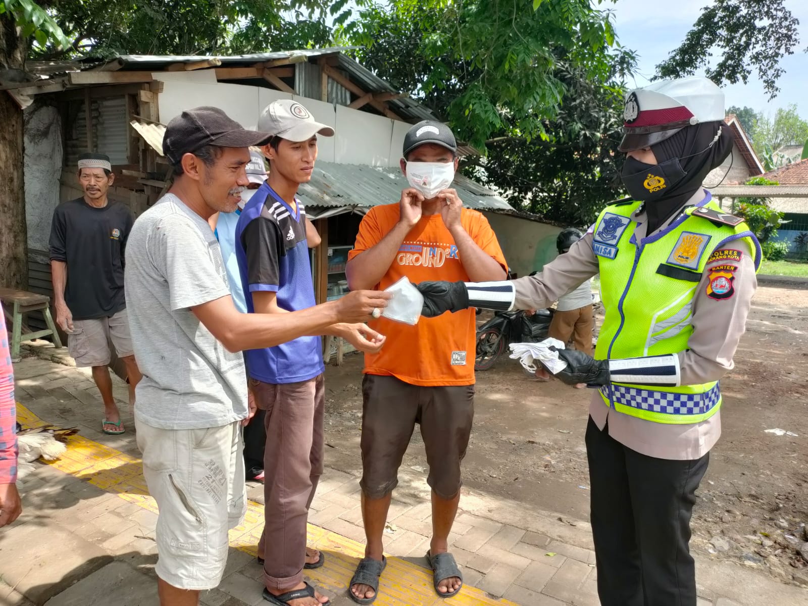 Kampanye pakai masker di Pasar Kalodran ini dipimpin oleh Ipda Ade K dan didampingi oleh Bripka Zarwo, Briptu Sandi, Briptu Mahsum, Briptu Ersa serta Bripda Anisa. (TP/HUMAS).