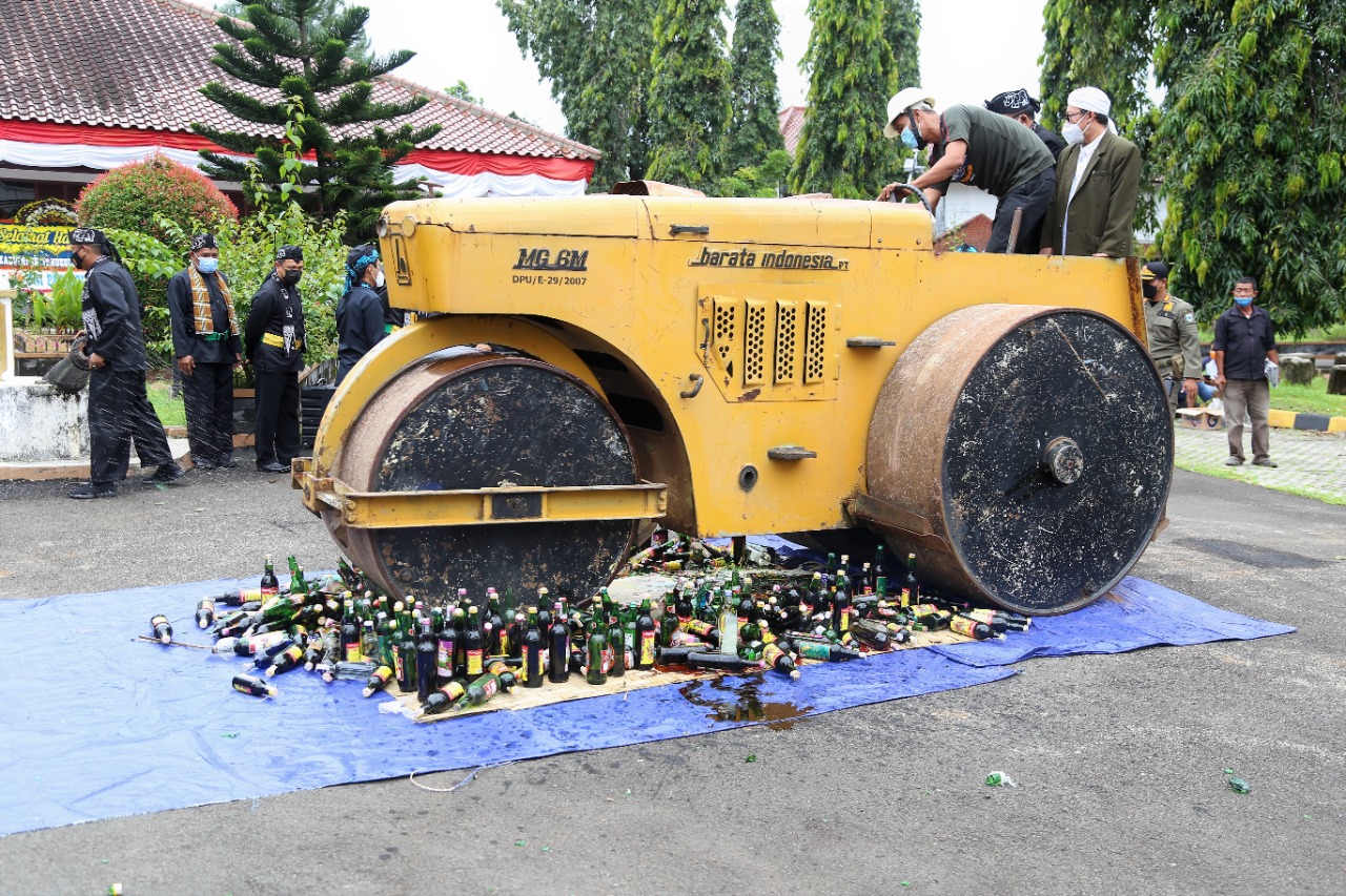Dijelaskan Entus Bakti, barbuk miras yang dimusnahkan bukan hanya pengembangan dari pedagang saja. Melainkan dari pengguna yang terjaring saat razia. “Makanya ada yang isinya setengah, dan ada pula yang kosong itu. Kita ambil saat razia karena sebagai barang bukti,”imbuhnya.