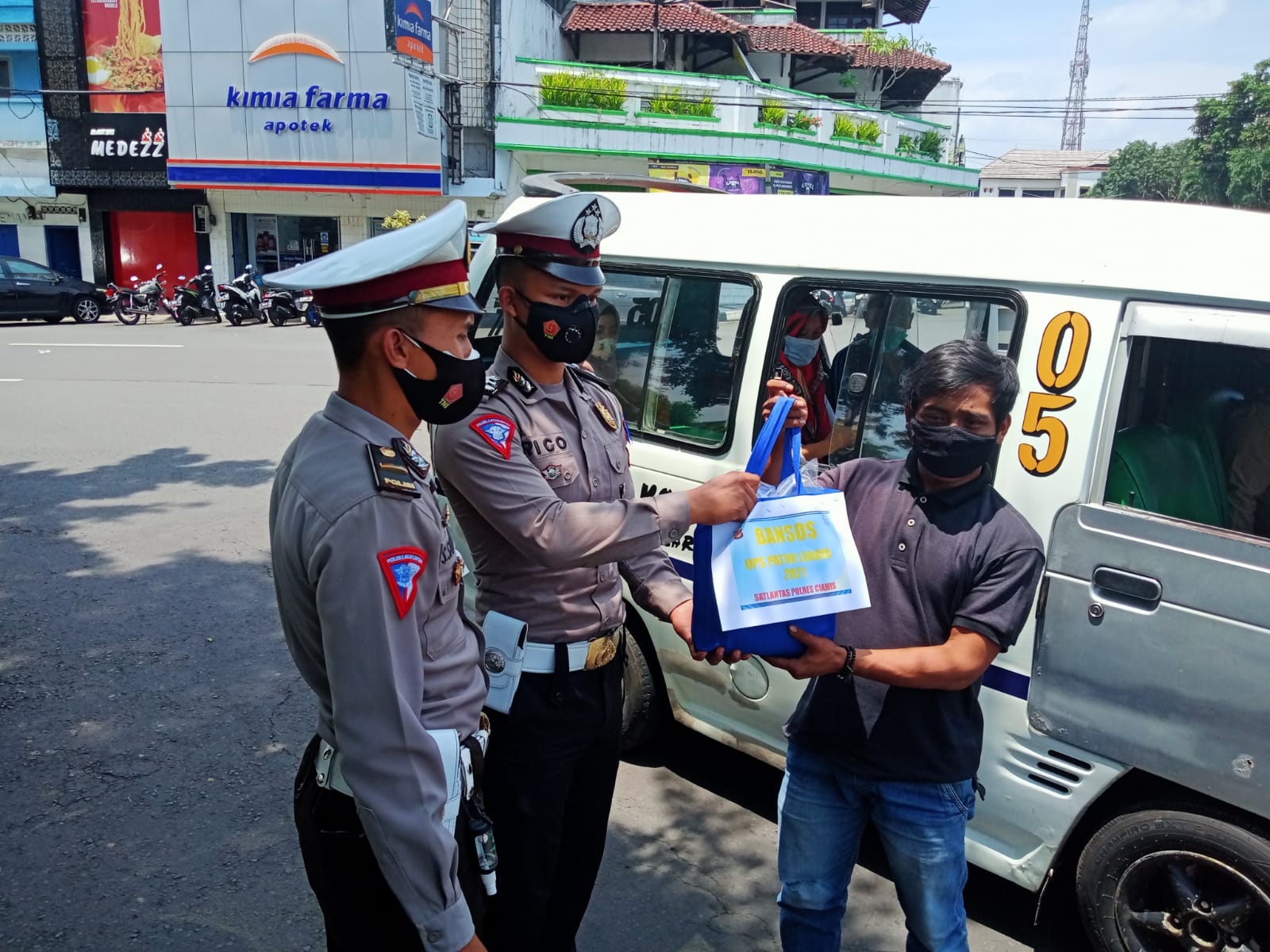 “Ops Patuh Lodaya Tahun 2021 hari ini kita tidak hanya memberikan edukasi prokes dan disiplin berlalu lintas, tapi kita juga memberikan bantuan paket sembako kepada supir angkutan umum,” kata AKP Bowo.