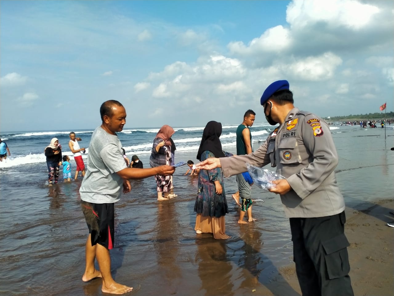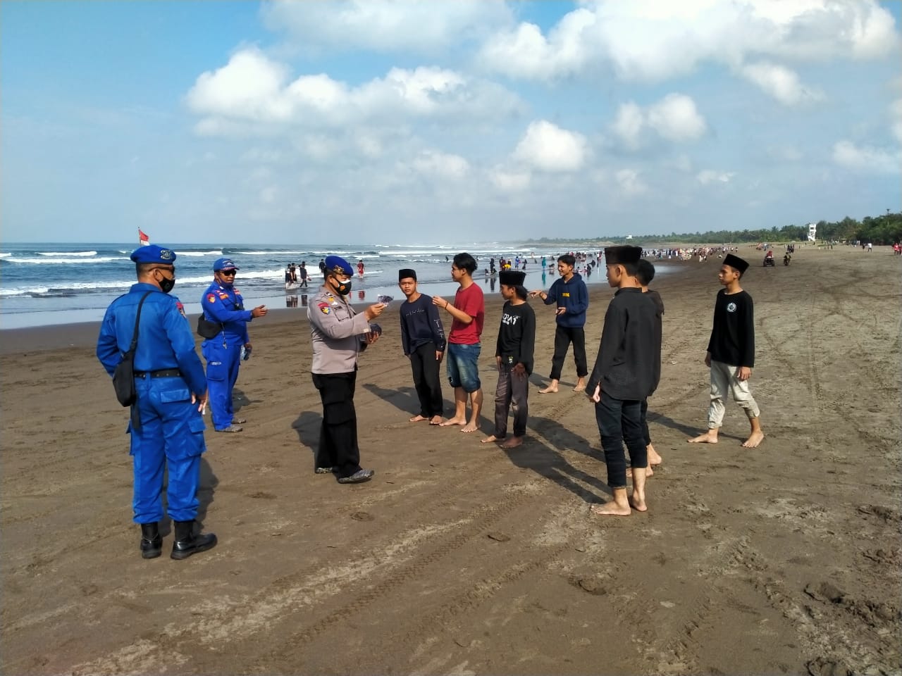Lebih lanjut, AKP Sugianto menuturkan, anggota yang bertugas tidak hanya berdiam diri memantau kegiatan yang ada di Pantai. Tetapi anggota juga sesekali berinteraksi dengan wisatawan untuk menyampaikan himbauan protokol kesehatan.