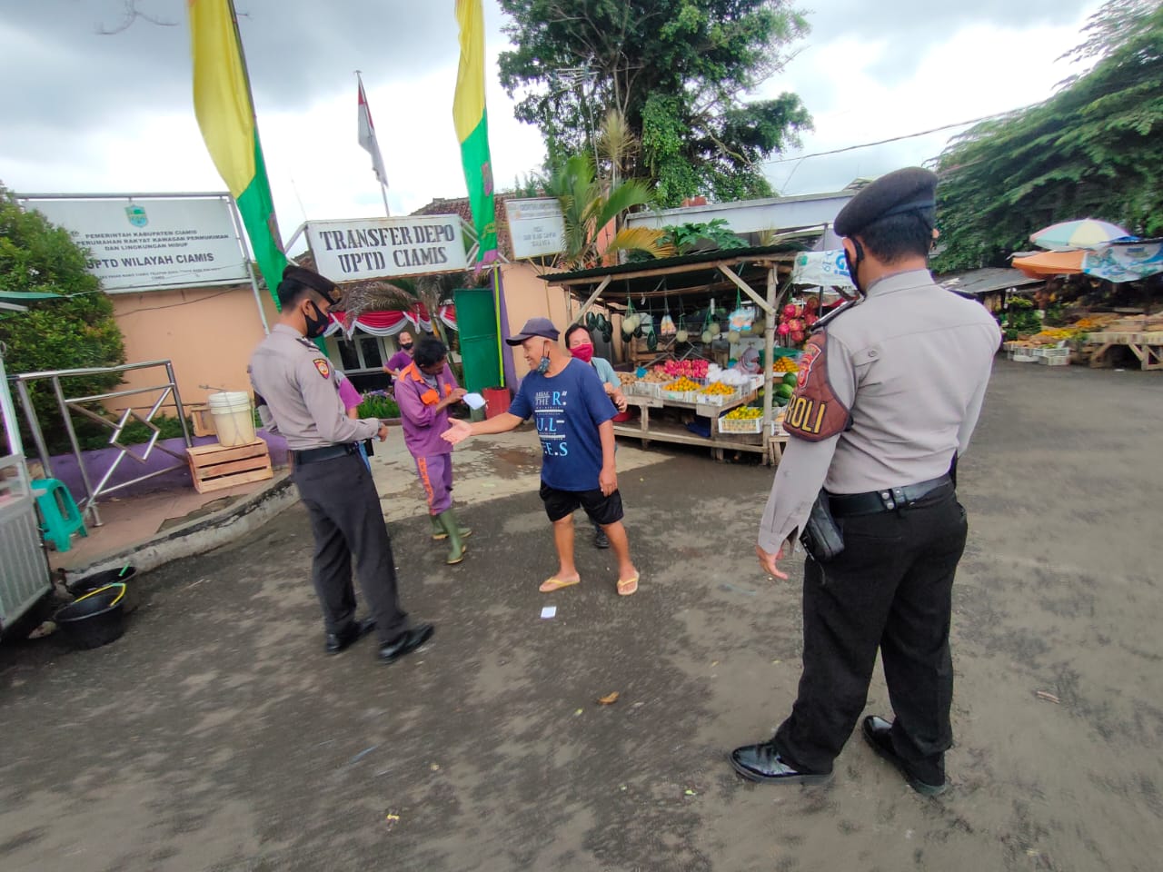 Selain memberikan tindakan berupa teguran, personel dilapangan juga membagikan masker gratis kepada warga. Sebanyak 20 masker dibagikan kepada masyarakat yany sedang beraktifitas disekitaran kawasan pusat perbelanjaan Ciamis.