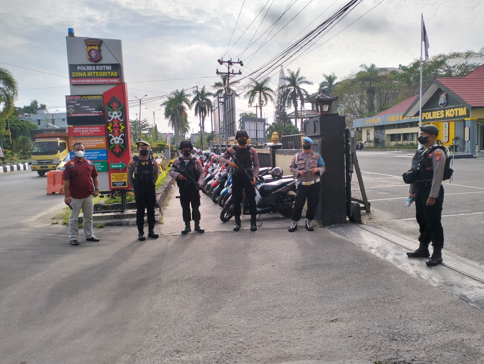 “Setiap hari personel Satuan Samapta Polres Kotim dengan senjata memback up di Pos Penjagaan. Mereka bersiaga membantu melakukan pemeriksaan barang bawaan pengunjung di Mako Polres Kotim guna mencegah hal-hal yang tidak diinginkan,” ujar Kasat Samapta