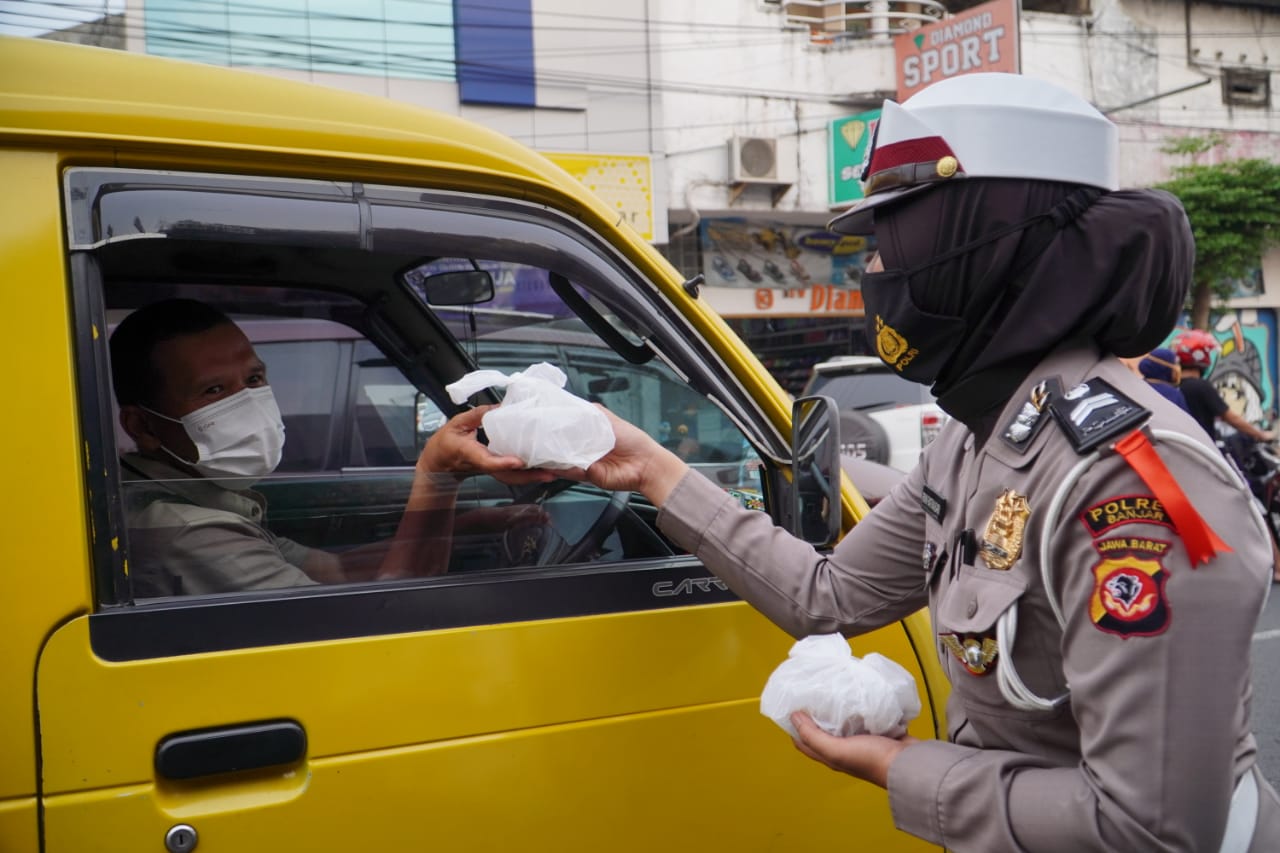 Selain membagikan takjil, Kapolres juga membagikan masker sebagai pengingat agar tetap mematuhi protokol kesehatan 5M.