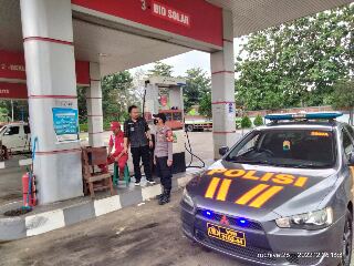 Personil Polsek Purwaharja Polres Banjar Polda Jawa barat melakukan kegiatan Patroli dan pengamanan SPBU di wilayah hukum Polsek Purwaharja, Senin (26/12/2022).