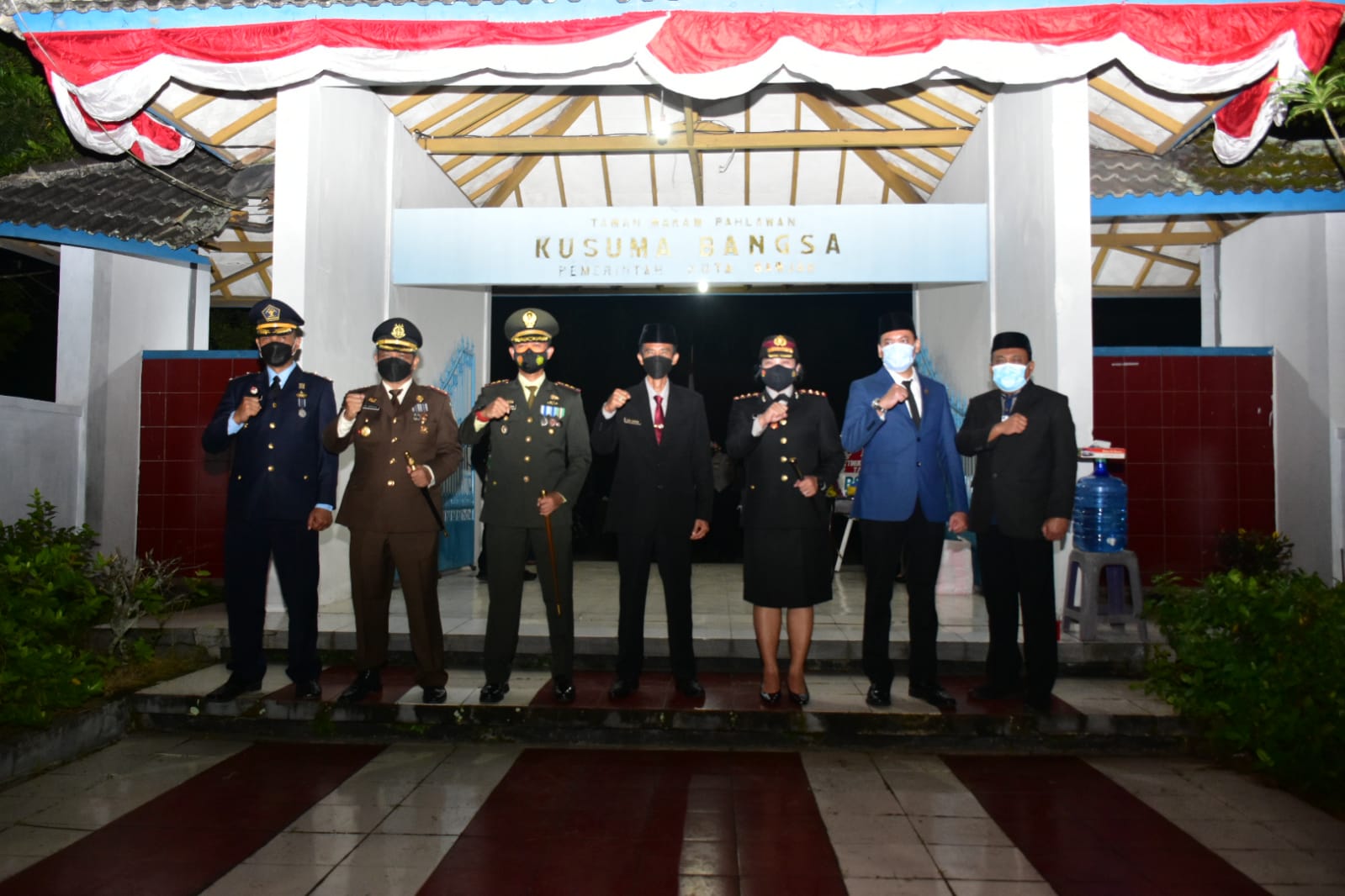 “Kami yang hadir pada hari ini, Selasa 17 Agustus 2021 pukul 00.00 WIB, pada upacara memperingati akan jasa-jasa para pahlawan nusa dan bangsa yang telah bersemayam di makam ini,” tuturnya.