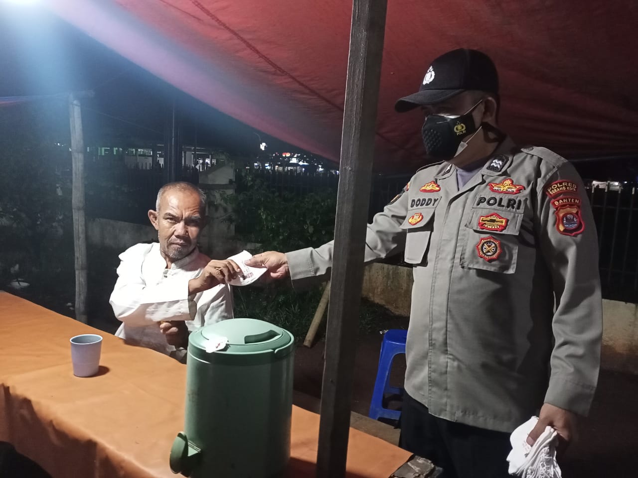 Berita Polres Serang Kota —Dalam Rangka Pemberlakuan PPKM Level 2 diwilayah Kecamatan Kramatwatu Polsek kramatwatu melaksanakan kegiatan operasi yustisi Senin malam (13/09/2021) yang dipimpin Pawas IPDA Rahmat Musrianto dan dilanjutkan Penyampaian Himbauan kepada para Pedagang Kaki Lima dan Pengunjung di sekitaran alun-alun Kramatwatu serta membagikan Masker kepada masyarakat.