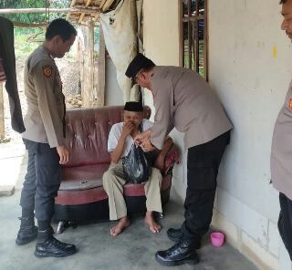 Terpisah, Kapolsek Pangkalan, AKP Edi Karyadi bersama anggotanya memberikan paket sembako kepada warga kurang mampu dan orang jompo.