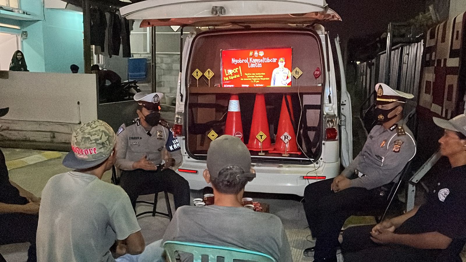 Beberapa warga sangat antusias ketika saat program Ngobrol Kamseltibcarlantas ini, para anggota Unit Kamsel juga tampak menyuguhkan kopi hangat kepada warga sesuai dengan tema Kop Ter (Kompak Tapi Tertib).