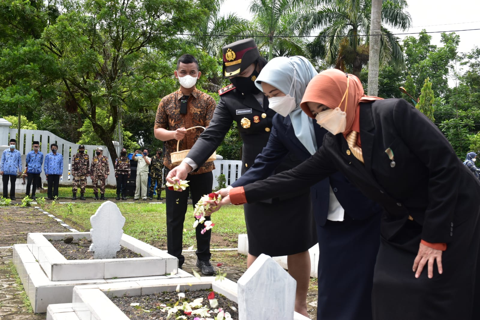 Selepas rangkaian upacara, Wali Kota bersama Wakil Wali Kota Banjar dengan didampingi oleh seluruh Forkopimda Kota Banjar serta tamu undangan melakukan tabur bunga di atas pusara makam pahlawan.