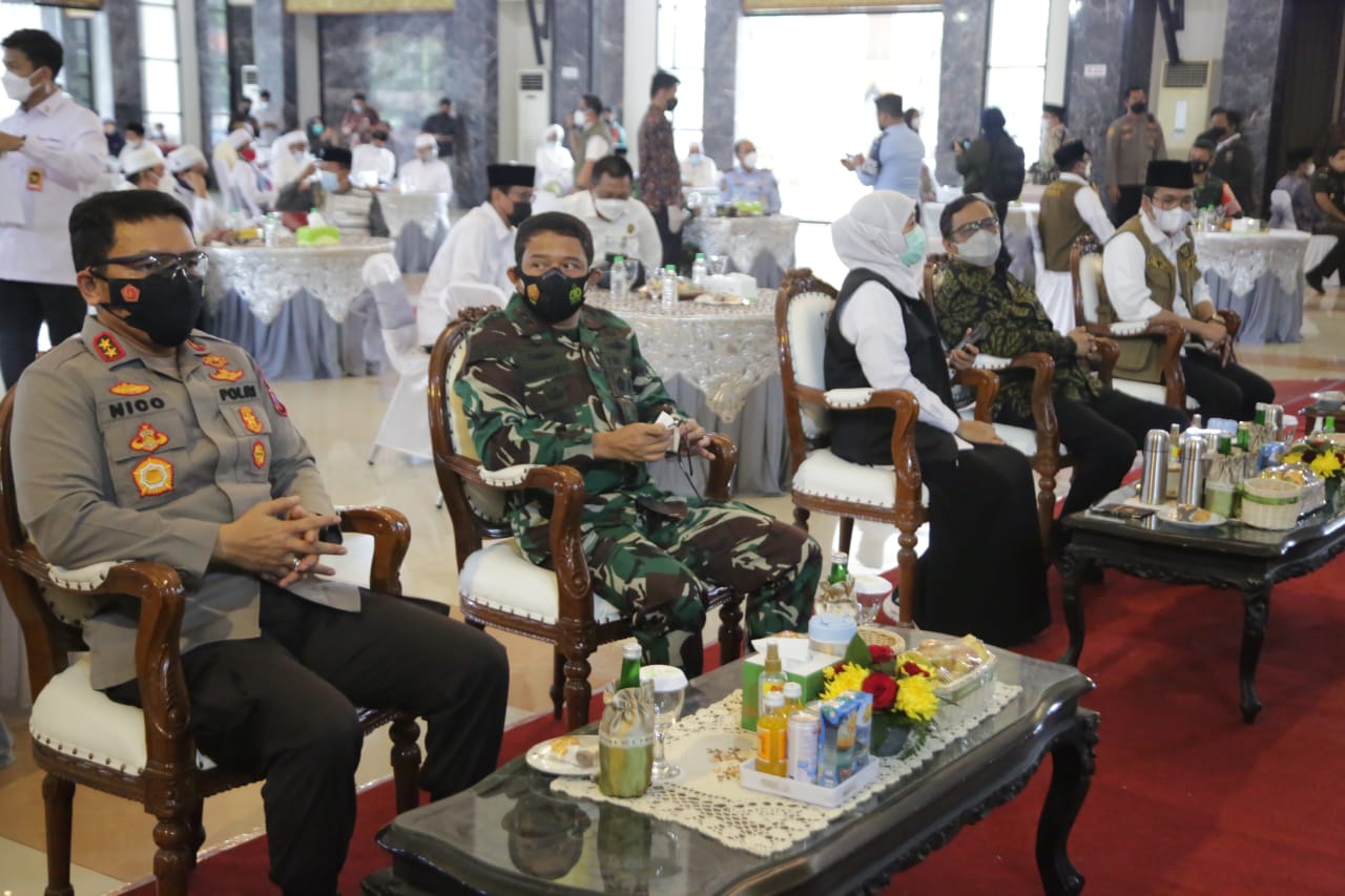 Berita Surabaya – Forkopimda Jawa Timur, Gubernur Khofifah Indar Parawansa, Pangdam V Brawijaya Mayjen TNI Suharyanto, Kapolda Jatim Irjen Pol Nico Afinta, Selasa mendampingi Prof. Dr. Mohammad Mahfud, Menteri Koordinator Politik Hukum dan Keamanan (Menkopolhukam) RI. Melaksanakan dialog bersama Forkopimda, tokoh agama dan tokoh masyarakat di Gedung Rato Ebuh, Kabupaten Bangkalan, Madura. Terkait antisipasi dan penanganan Covid-19. Pada Selasa Siang,(15/06/2021)
