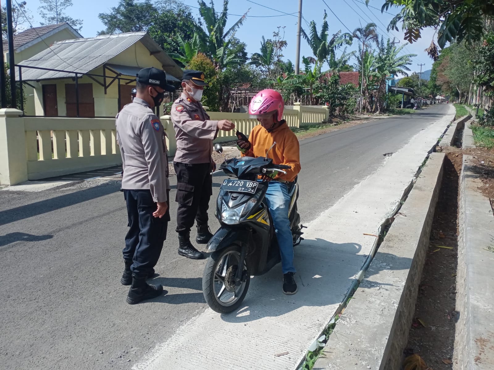 Bhabinkamtibmas Polsek Lemahsugih Polres Majalengka beserta anggota melaksanakan Ops Yustisi sekaligus sambang warga di sekitaran wilayah hukum Polsek Lemahsugih, Rabu (27/10/2021).