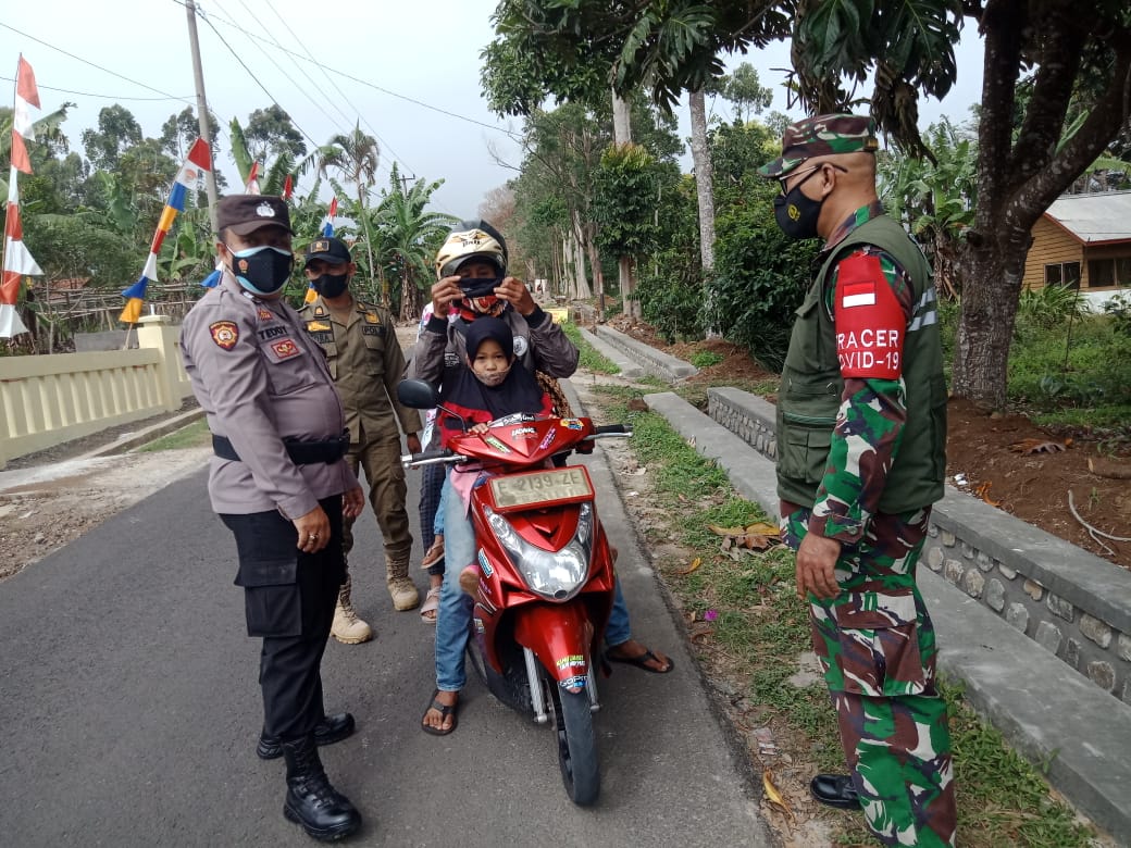Dalam kegiatan menyasar warga masyarakat yang melintas di Jalan raya depan Mako Polsek Lemahsugih Polres Majalengka yang tidak menggunakan masker.