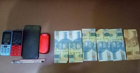 Sedangkan barang bukti yang ditemukan dan disita dari kedua tersangka berupa 1 unit Handphone warna merah merk Strow Berry, 1 unit Handphone warna hitam merk vivo, 1 unit HP warna putih dan biru merk Mito dan uang tunai Rp. 105.000 serta uang tunai Rp. 150.000.