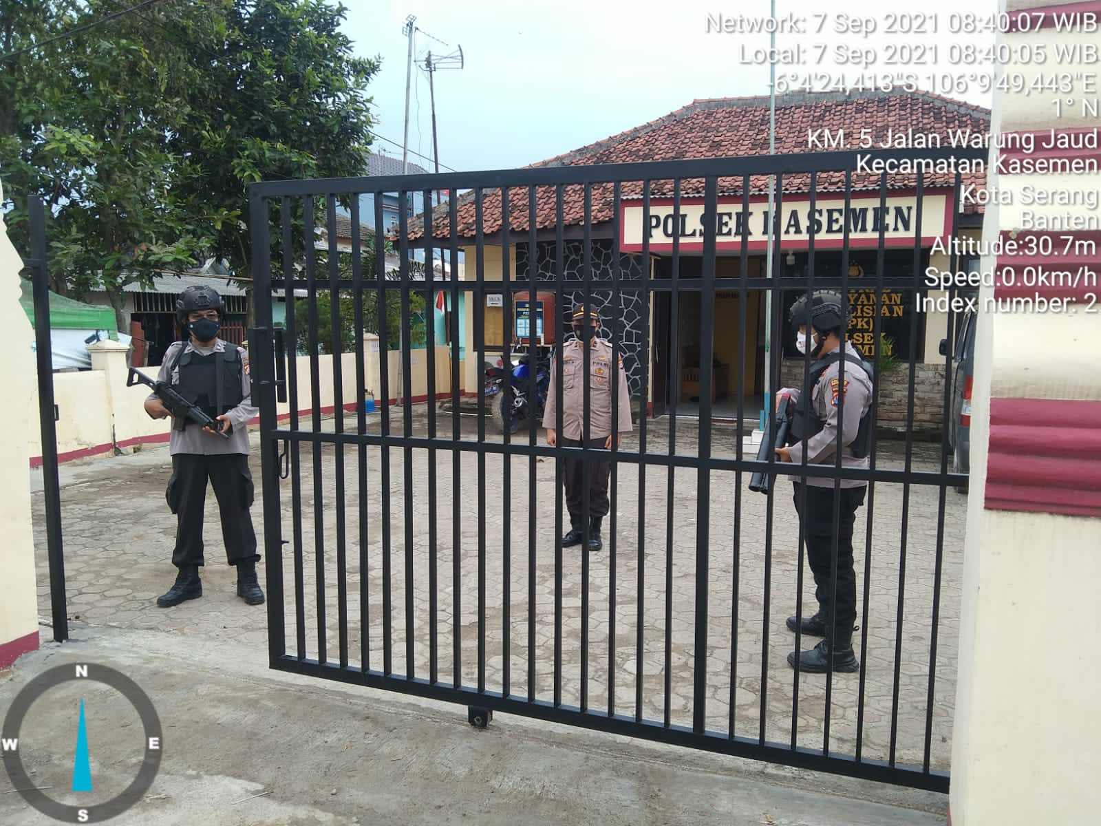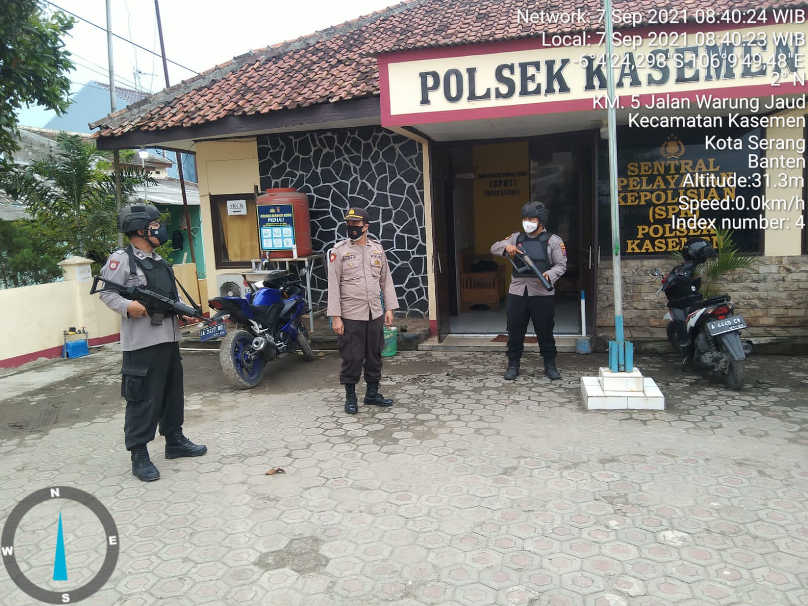 Polsek Kasemen Polres Serang Kota Polda Banten Dalam rangka menjaga kondusifitas dan keamanan Mako (Markas Komando), Polsek Kasemen melaksanakan kegiatan Sistem Pengamanan Mako (Sispam Mako) dengan menyiagakan sejumlah personil bersenjata lengkap.