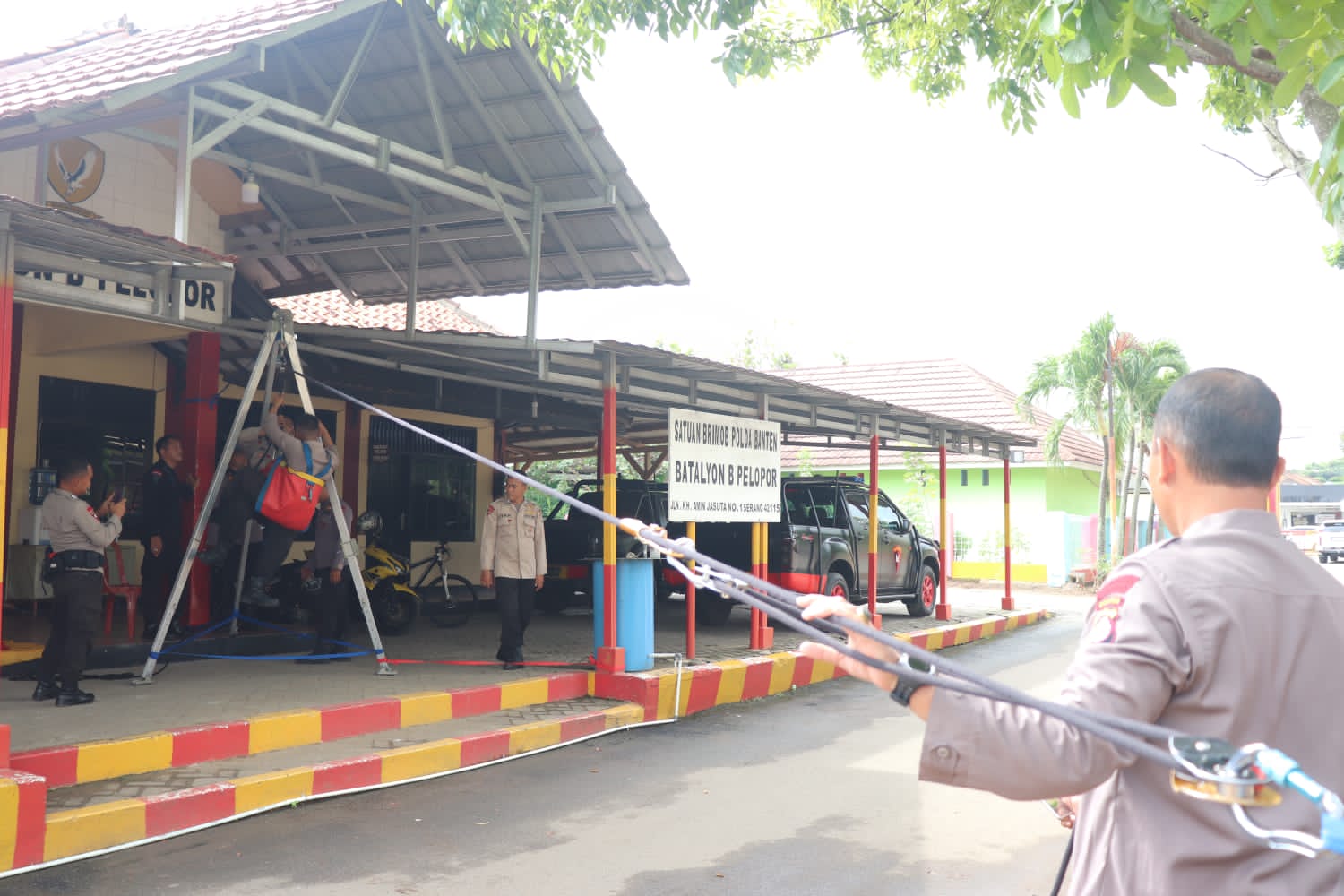 Satbrimob Polda Banten – Untuk mengantisipasi bencana alam serta kecelakaan yang terjadi, personel Batalyon B Pelopor Satbrimob Polda Banten gelar latihan vertical rescue di Halaman gedung Batalyon B Pelopor Satbrimob Polda Banten, pada Rabu (12/01).