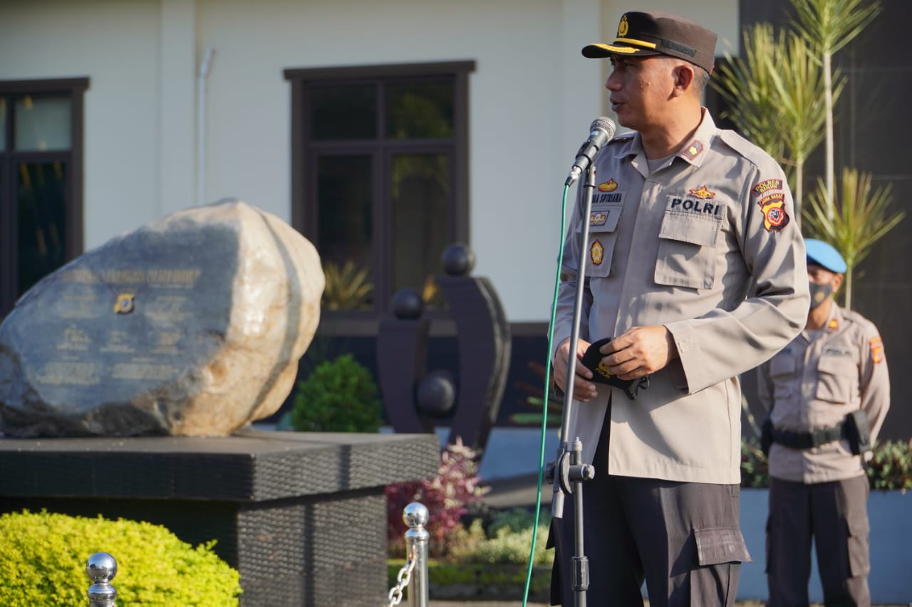 Berita Polres Banjar Polda Jabar – Berlokasi di Mapolres Banjar, Kapolres Banjar AKBP Melda Yanny, S.I.K.,M.H. melalui Wakapolres Banjar Kompol Lalu Wira Sutriana K.,Amd. pimpin apel pagi rutin yang dihadiri oleh Pejabat Utama Polres Banjar dan diikuti oleh personel Polres Banjar. (09/06)