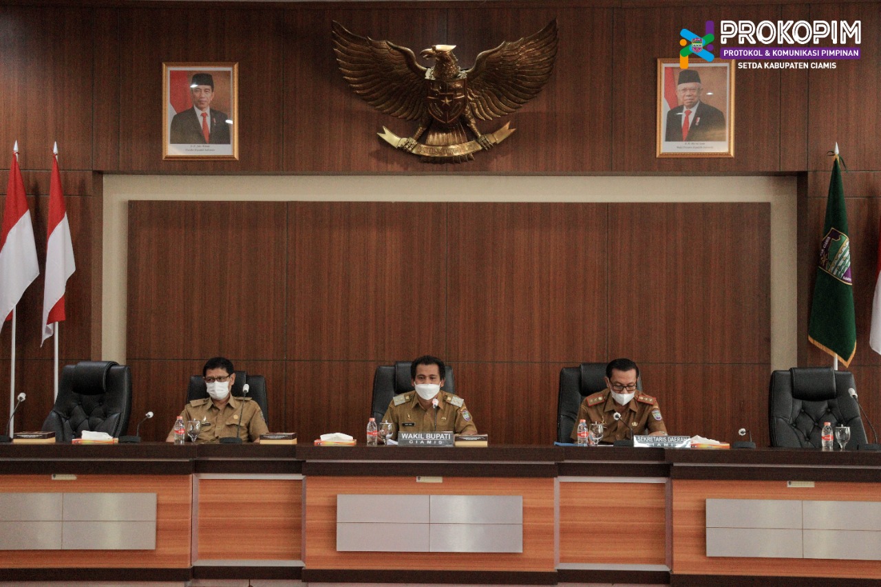 Berita Kab.Ciamis – Sebagai langkah evaluasi dan optimalisasi pelayanan publik, Pemerintah Kabupaten Ciamis bersama seluruh OPD, Camat dan unsur terkait lainnya lakukan Rapat Koordinasi yang dilaksanakan di Aula Setda Kabupaten Ciamis secara virtual pada hari senin, (14/07/2021).