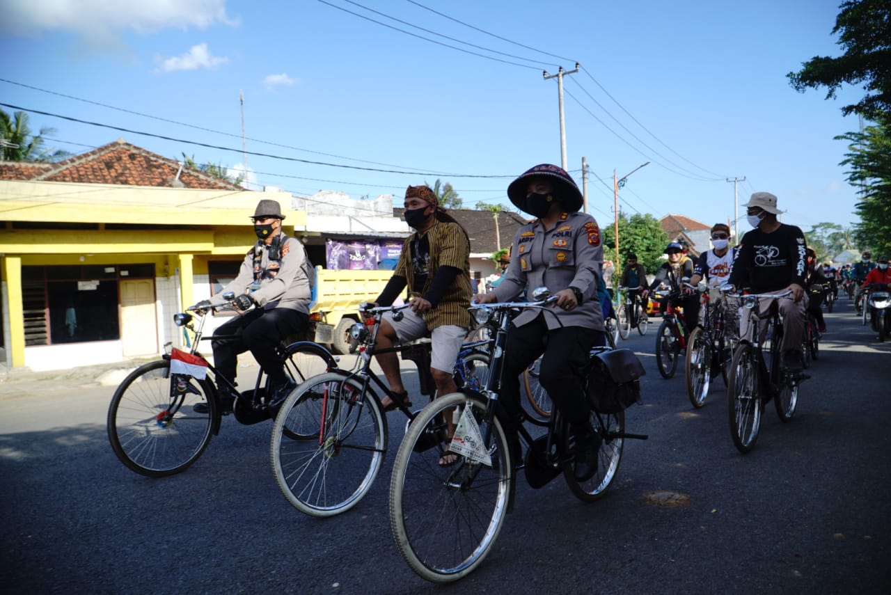 Unik, Kapolres Banjar Salurkan Bansos dengan Mengayuh Sepeda Ontel di Langensari
