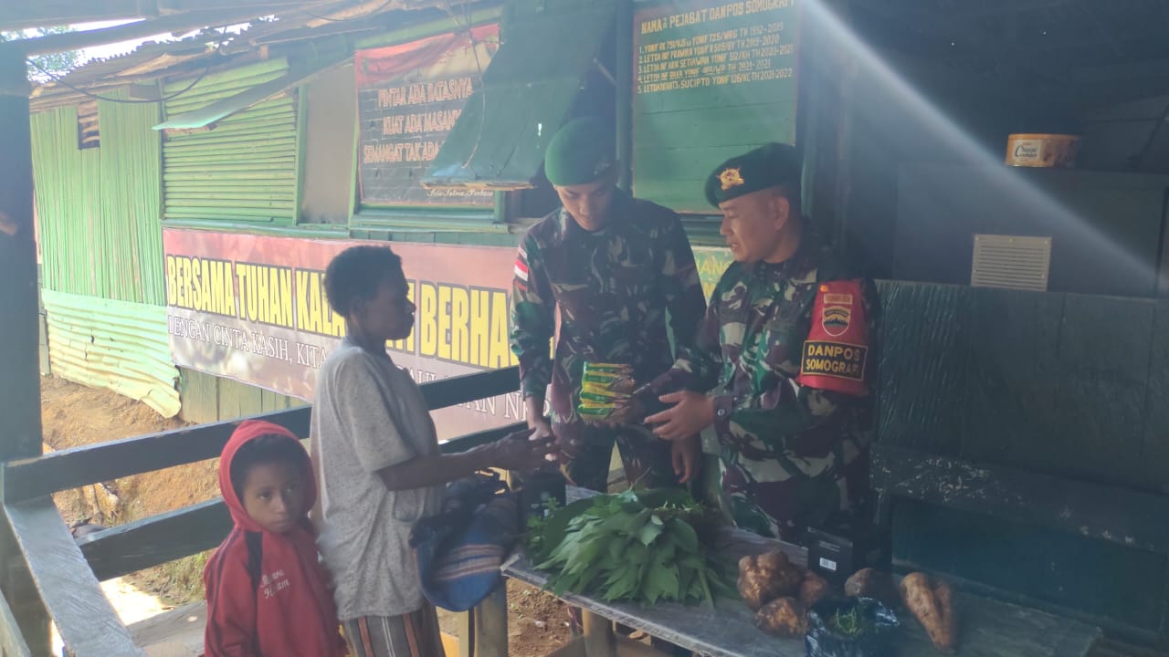 Hal menarik yang terjadi dan sudah menjadi tradisi masyarakat perbatasan dengan cara tukar menukar hasil bumi berupa sayur-sayuran, buah-buahan dan umbi-umbian melalui Mama-mama yang datang ke Pos Somografi Satgas Yonif 126/KC.