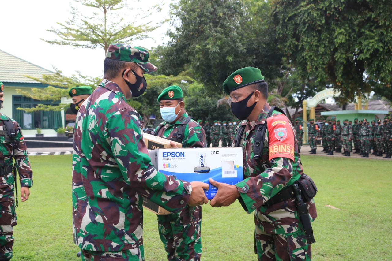 Berita Makodim Kendari–_Sebagai upaya meningkatkan Pembinaan Teritorial (Binter) maupun kualitas kinerja personel. setelah upacara bendera telah dilaksanakan, Dandim 1417/Kendari Kolonel Kav Agus Waluyo, S.I.P., menggelar penyerahan Sarana Komunikasi yaitu berupa Komputer yang diberikan kepada Danramil 1417-13/Poasia Kapten Inf Bambang Santoso, yang dilaksanakan di Lapangan Makodim Jalan Sam Ratulangi, Kemaraya, Kendari Barat, Kota Kendari, Senin (25/01/2021).