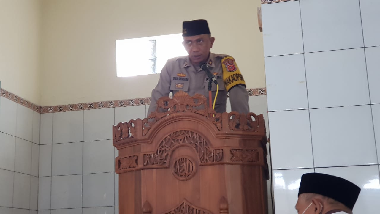 Wakapolres Banjar dalam imbauannya kepada para Jemaah mengatakan menyampaikan salam dari Ibu Kapolres Banjar serta pihkanya tidak bosan-bosan untuk menyampaikan imbauan protokol kesehatan 5M.