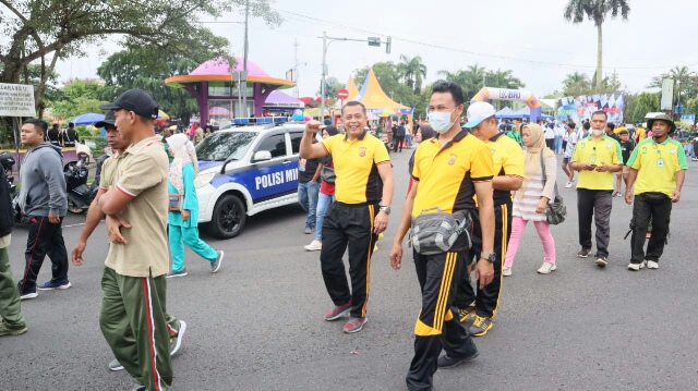 Pada kesempatan tersebut, Wakapolres yang mewakili Kapolres Ciamis AKBP Tony Prasetyo Yudhangkoro, SH., S.I.K., M.T., mendampingi Komandan Kodim 0613/Ciamis Letkol Inf Wahyu Alfiyan Arisandi, S.I.P., M.I.Pol., bersama Kepala Daerah Kabupaten Ciamis dan Kota Banjar melepas peserta Jalan Sehat.