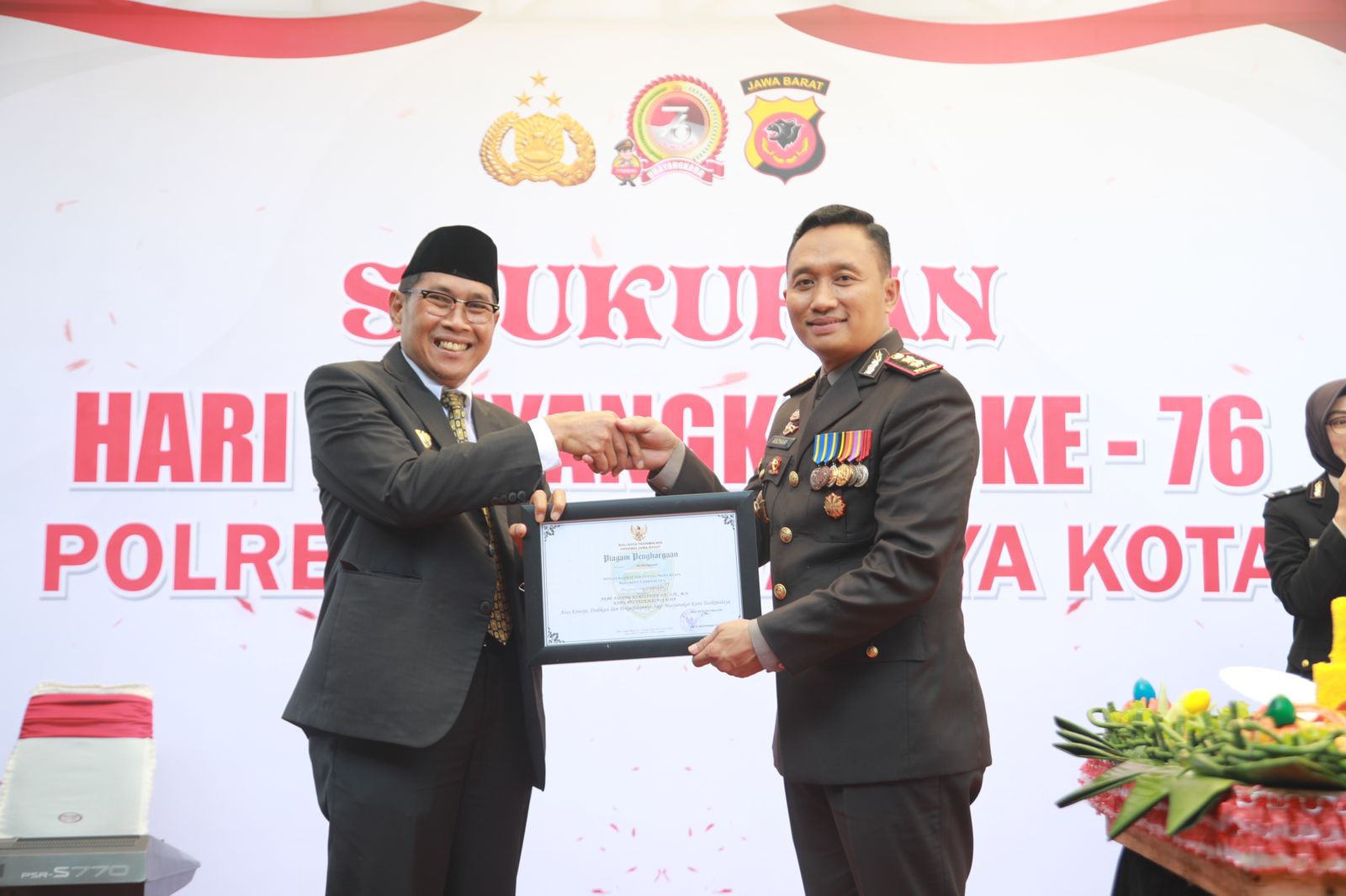 Sementara itu Kapolres Tasikmalaya Kota AKBP Aszhari Kurniawan, S.H., S.I.K., M.Si. saat menerima Piagam Penghargaan mengatakan, Jajarannya sangat berterima kasih atas Penghargaan yang begitu istimewa dari Wali Kota Tasikmalaya.