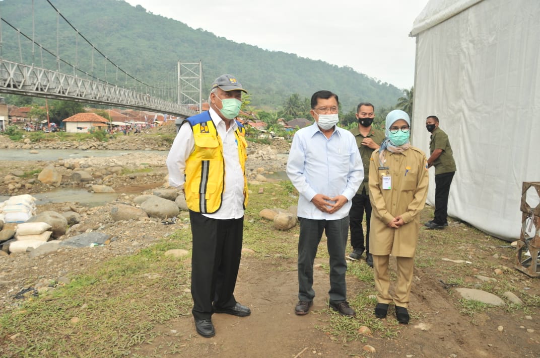 Berita Kab.Lebak-, Pembangunan dua jembatan gantung di Kabupaten Lebak tepatnya di Desa Banjar Irigasi dan Desa Sajiramekar melalui program Corporate Social Responsibility (CSR) PT. Bukaka Teknik Utama, Tbk diresmikan penggunaannya secara langsung oleh Wapres RI Ke-12 Jusuf Kalla didampingi Menteri Pekerjaan Umum dan Perumahan Rakyat (PUPR) RI Basuki Hadimuljono. Bertempat di Kecamatan Lebak Gedong, Selasa (15/06/2021).