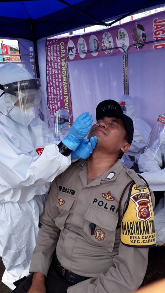 Berita Ciamis (Jawa Barat)– Dalam rangka mencegah dan memutus rantai penyebaran virus corona, Kapolsek Cipaku Iptu Sumaryadi B Kresna bersama unsur Muspika bekerjasama dengan Dinas Kesehatan kabupaten Ciamis melaksanakan rapid test di Pasar Buniseuri dusun Kota desa Buniseuri kecamatan Cipaku. Kegiatan ini dilaksanakan selain mencegah penyebaran juga mengantisipasi kesiapan masyarakat dalam menjalani kebiasaan baru (new normal).