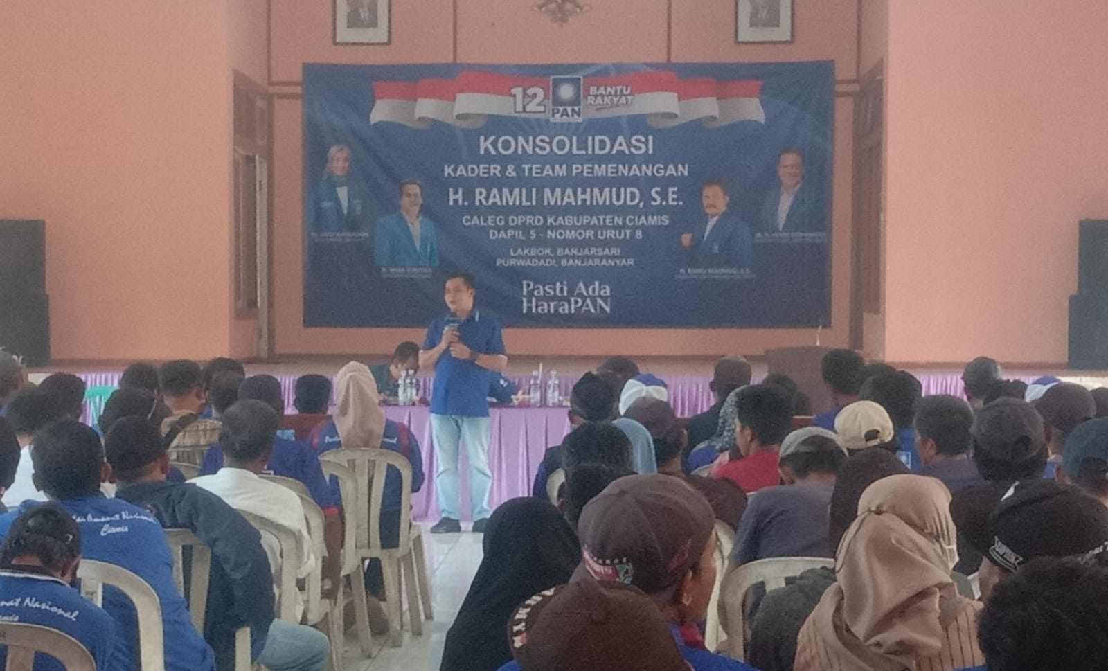 Ciamis–Ratusan kader dan team pemenangan H. Ramli Caleg DPRD Kab Ciamis Dapil 5 Nomor Urut 8 dari Partai PAN mengikuti konsolidasi dan pemantapan team
