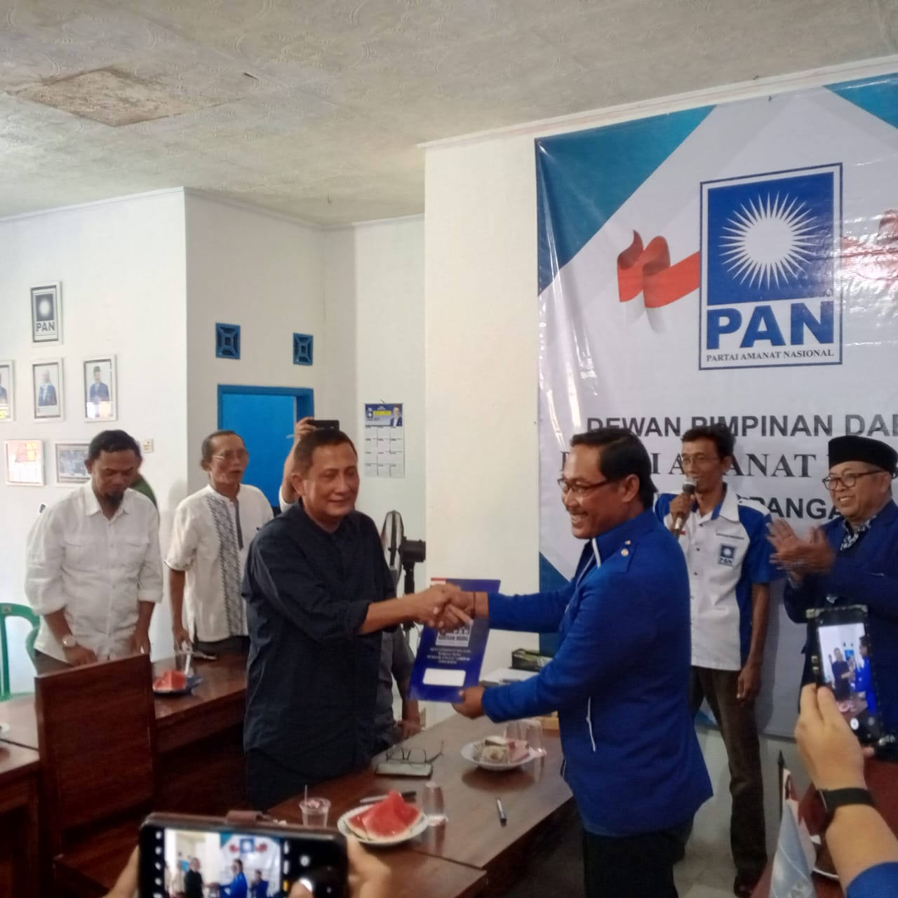 Ujang Endin Indrawan dinyatakan resmi mendaftar setelah mengembalikan berkas pencalonan dan menjalani wawancara kandidat yang dilakukan DPC PAN Kabupaten Pangandaran, Senin (06/ 05 / 2024).
