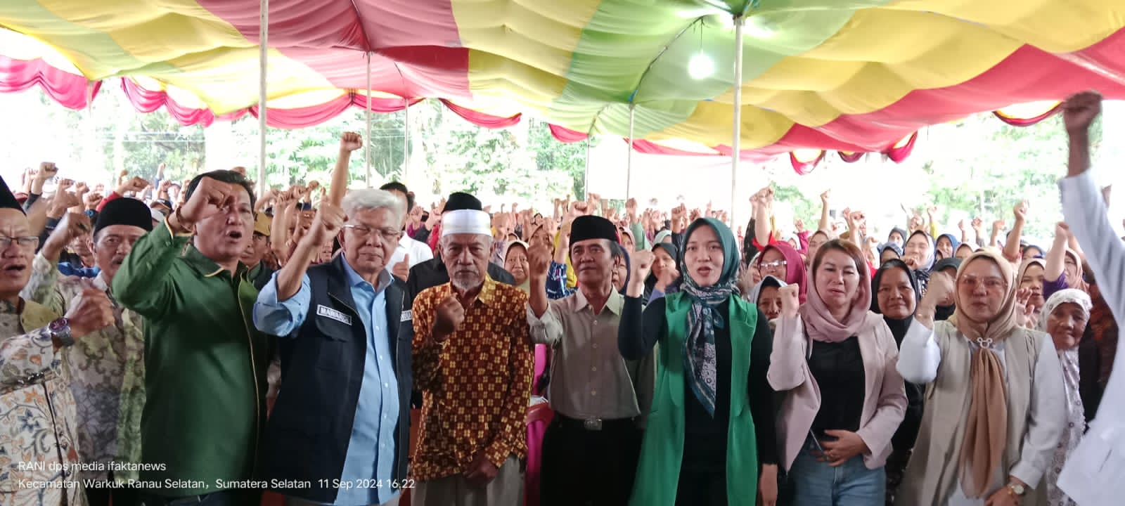 Warga dari masyarakat Warkuk Ranau Selatan, begitu antusias menyambut Paslon MATAHATI di kabupaten tersebut dengan slogan “Sumsel Bangkit Bersama” menyambut kedatangan Paslon calon gubernur dan wakil gubernur Sumsel pada Pilkada serentak tahun 2024 periode 2025-2030 nanti.