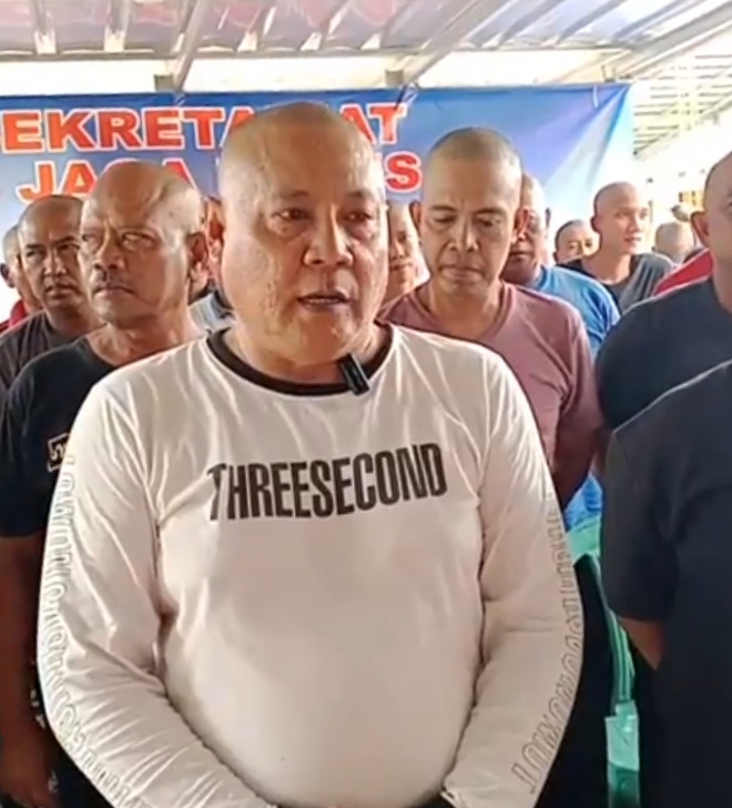Kegiatan cukur bersama di kediaman ketua satgas jaga lembur Ade Entik ini seratus anggota jaga lembur dari 100 orang 93 pria dan 7 wanita semua anggota jaga lembur pria di cukur gundul semua