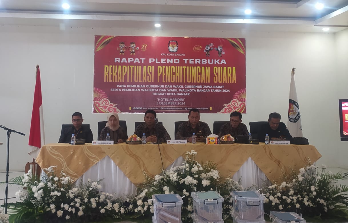 “Rapat pleno hasil perhitungan perolehan suara pada Pemilihan Gubernur dan Wakil Gubernur Jawa Barat serta Pemilihan Walikota dan Wakil Walikota Banjar, saya nyatakan dibuka dan terbuka untuk umum,” ujarnya