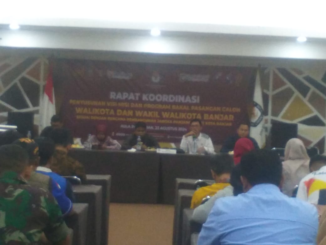 KPU Kota BANJAR – Komisi Pemikihan Umum (KPU) Kota Banjar, lakukan Rapat Kordinasi Penyusunan Visi Misi Walikota Banjar, di laksanakan di Toserba Pajajaran dan di hadiri oleh PJ Kota Banjar yg di wakil oleh Asda 2, tamu undangan dan Forkopimda Kota Banjar dan Visi Misi Walikota Banjar. Jum’at (23/082025).