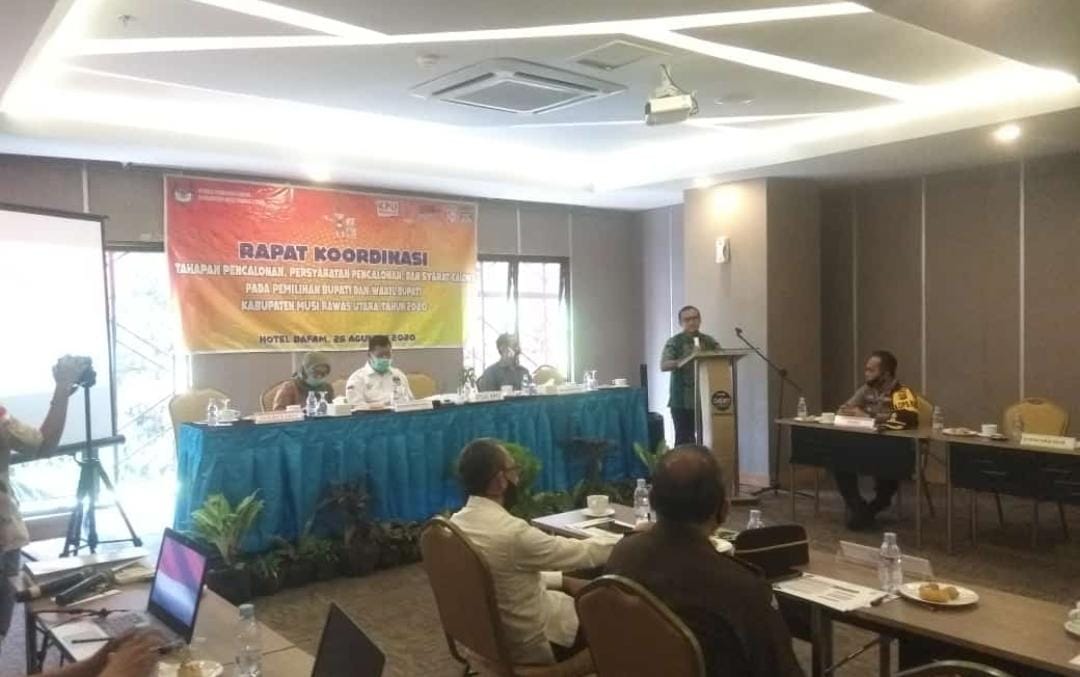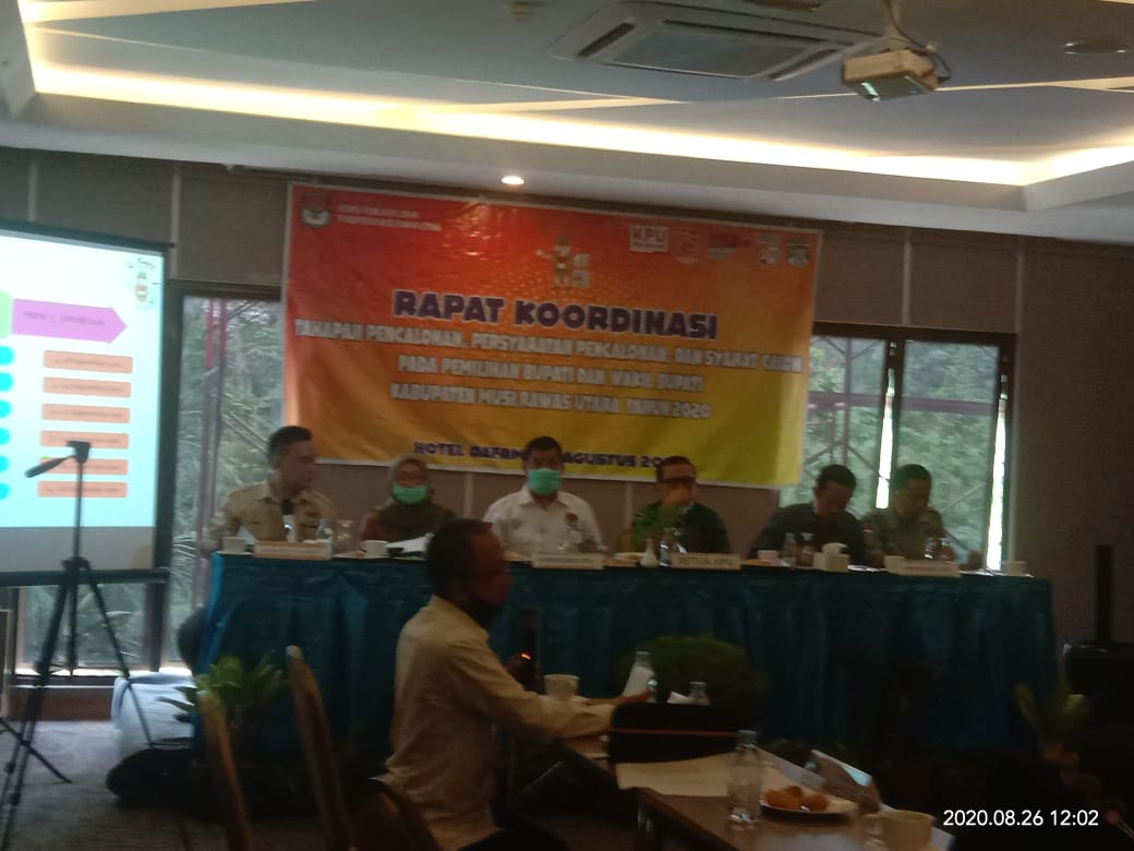 Berita Pilkada Musi Rawas Utara — Komisi pemilihan umum (KPU) kabupaten Musi Rawas Utara (muratara) provinsi Sumatra Selatan, Gelar Rapat koordinasi, Tahapan, PerSyaratan pencalonan dan Syarat Pencalonan Pelaksanaan Pilkada Muratara Tahun 2020-2025 diHotel Dafam kota Lubuklinggau , Rabu(26/8/2020)