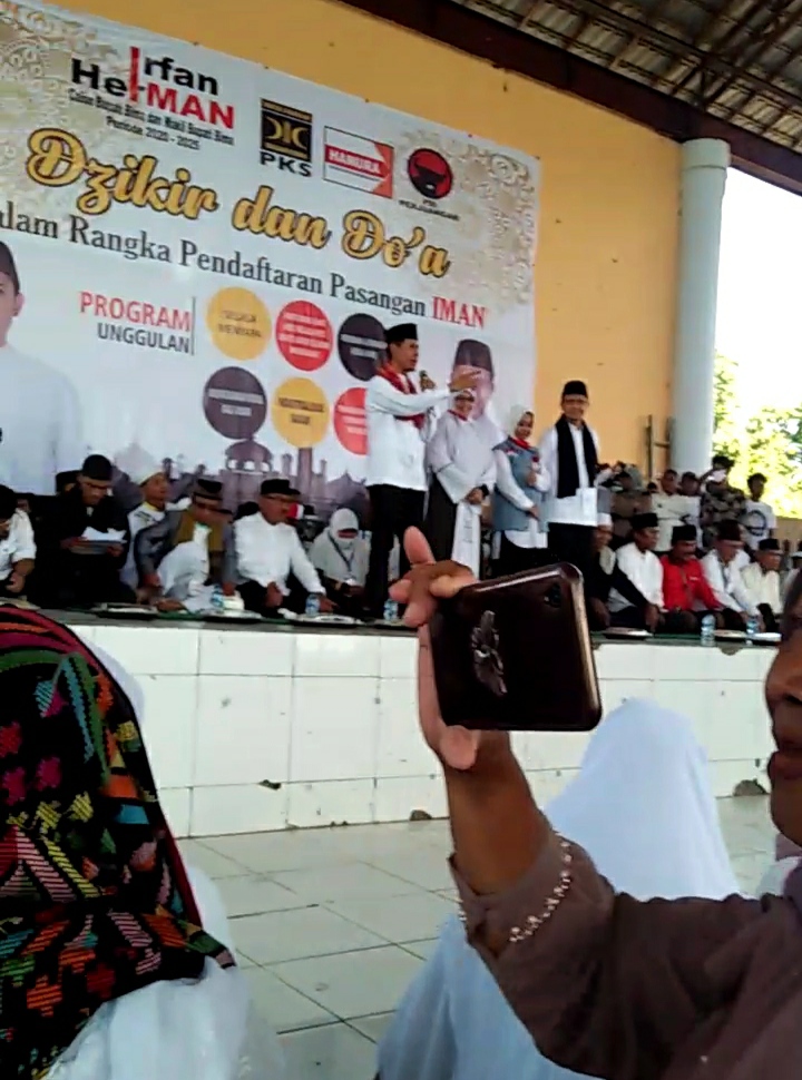 Dr. Irfan (Calon Bupati Bima) menyampaikan bahwa, kita semua hadir di sini karena keinginan yang satu, yaitu menghadirkan pemimpin yang mencintai rakyat, pemimpin yang tertawa bersama rakyat, nangis bersama rakyat, pemimpin yang mau mendengarkan rakyat dan mau melihat kehidupan rakyat. Bagaimana tidak, karena sesungguhnya pemimpin bisa hadir apabila bersama rakyat,”ujarnya.