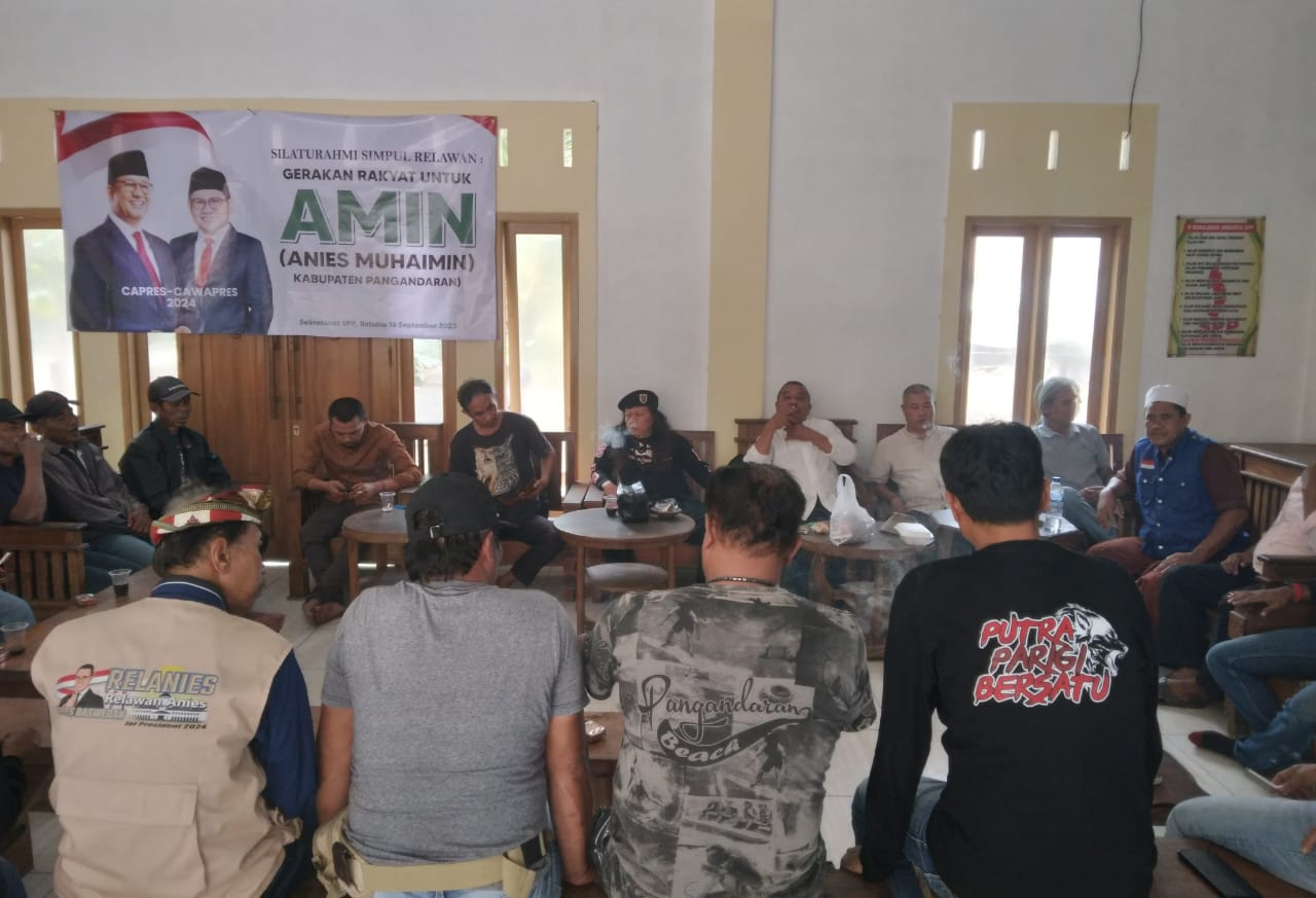 Baraknews Pangandaran, – Tim Simpul Relawan Gerakan Rakyat Untuk Pemenangan Capres-Cawapres Anies Baswedan-Muhaimin Iskandar (AMIN) Kabupaten Pangandaran Melakukan Silaturahmi dengan para simpatisan dan relawan di Sekretarian Serikat Petani Pasundan (SPP) Pantai Batu Hiu, Sabtu (16/09/2023).