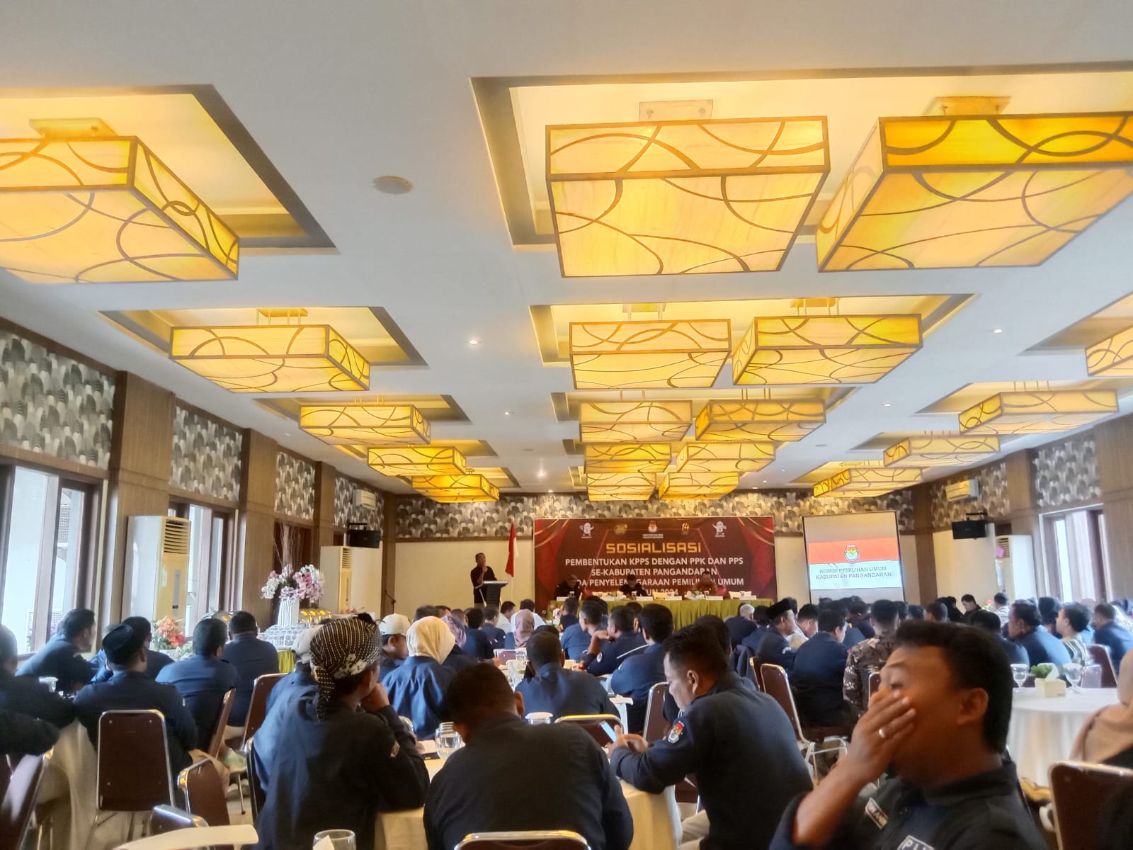 Jabar–Sosialisasi pembentukan kelompok penyelenggara pemungutan suara (kpps) dengan PPK dan PPS se kabupaten pangandaran, pada penyelenggaraan pemilihan umum tahun 2024, di ikuti 150 orang ,bertindak selaku penanggung jawab kegiatan ketua KPU ( muhtadin S,Hi) pada hari Minggu 03 Desember 2023 pukul 09 s/d 12,40 wib bertempat di menara hotel pangandaran jln bulak laut pantai pantai barat Pamugaran Pananjung pangandaran