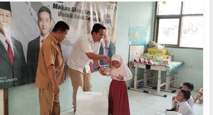 Terlihat raut sumringah terpancar dari siswa-siswi SDN 2 Kalipucang. Pasalnya para pelajar tersebut mendapat makan siang gratis dari DPC Gerindra kabupaten pangangandaran.