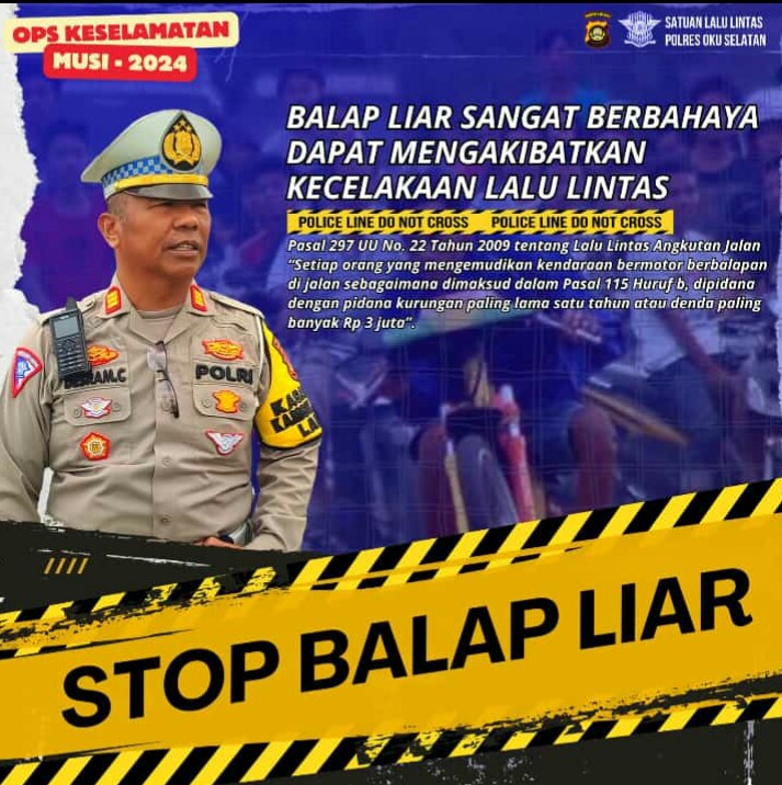 Melalui Operasi Keselamatan Musi 2024, Polres OKU Selatan mengeluarkan himbauan tersebut, untuk mengajak seluruh pengguna jalan untuk tidak melakukan balap liar.