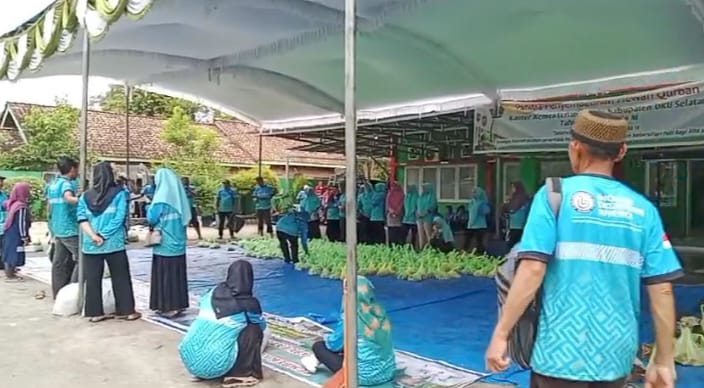 Para pegawai Kementerian Agama OKU Selatan, berkumpul dan bergotong-royong untuk pelaksanaan pemotongan hewan Qurban tersebut. Pada hari Rabu, 19 Juni 2024.