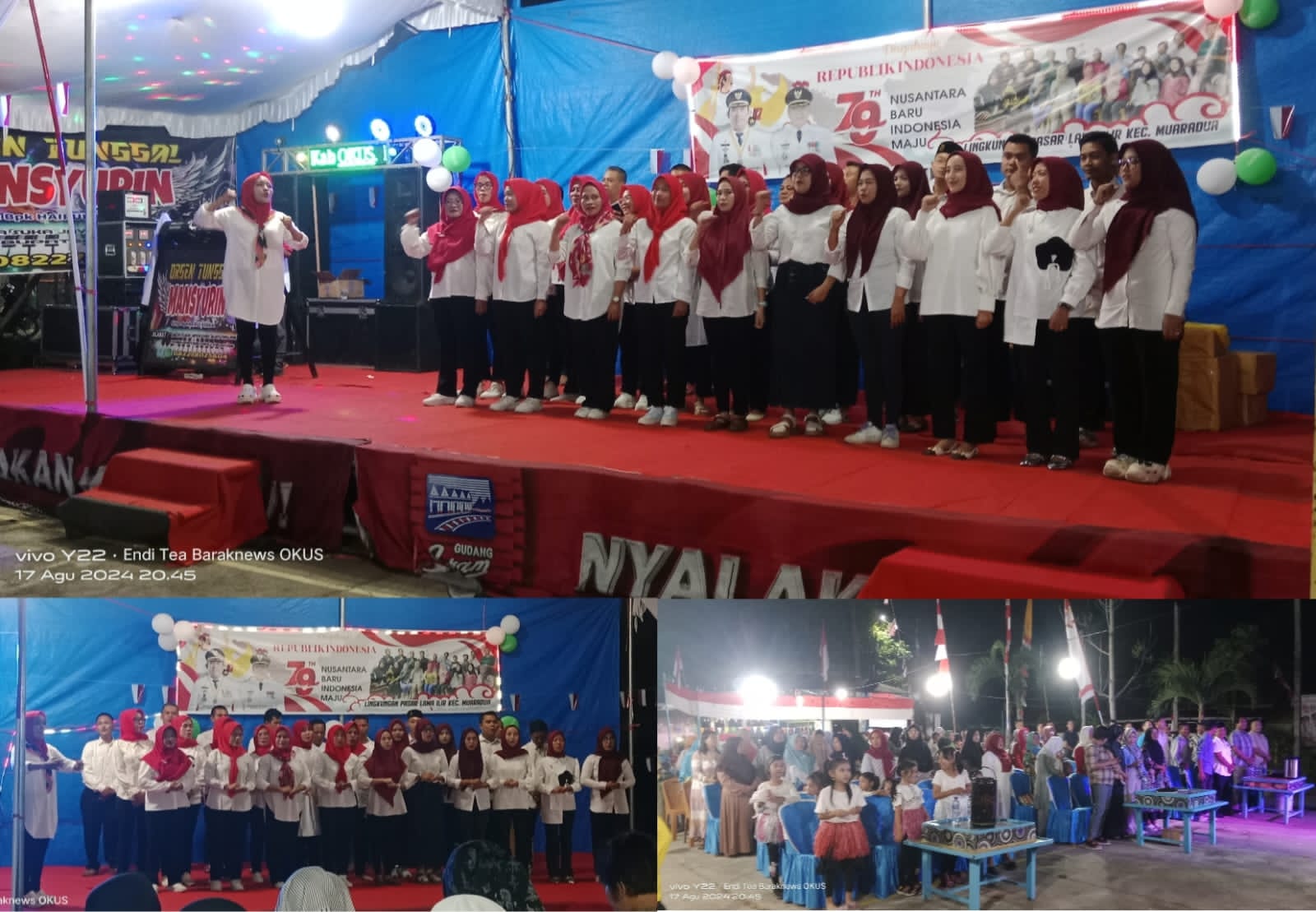 Muaradua – Para warga Lingkungan VI, Pasar Lama Ilir, kelurahan Bumi Agung, Kecamatan Muaradua, Kabupaten OKU Selatan merayakan momen penting di hari kemerdekaan Republik Indonesia (RI) ke-79 tahun 2024, dengan penuh semangat di Asrama Polisi (ASPOL) Muaradua pada Sabtu malam, 17 Agustus 2024.