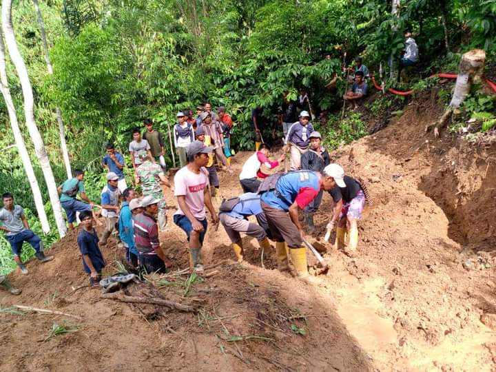 Konon kabarnya, dalam upaya membersihkan material longsor ini, puluhan orang dari masyarakat desa bergotong-royong membersihkan jalan yang berjarak 300 meter dari pemukiman.