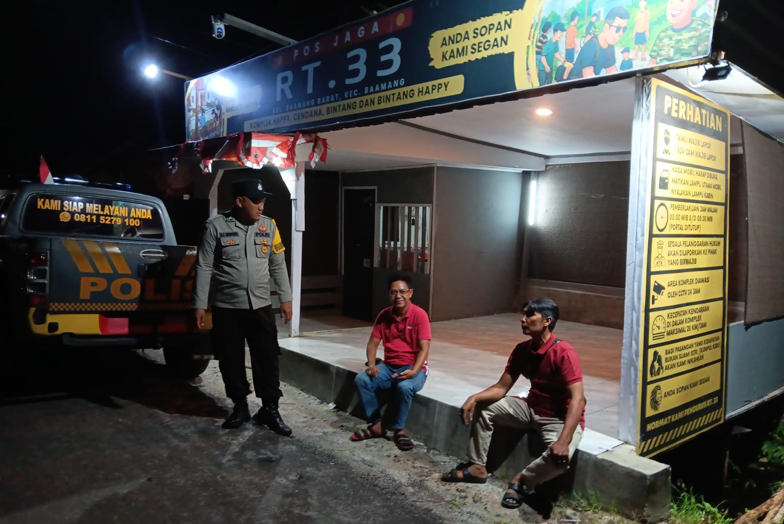 Kotim – Dalam rangka menjaga situasi keamanan dan ketertiban masyarakat (Harkamtibmas), Polsek Baamang jajaran Polres Kotawaringin Timur (Kotim), Polda Kalimantan Tengah, melaksanakan kegiatan sambang ke Pos Keamanan Lingkungan (Satkamling) di RT 033 RW 002, Kelurahan Baamang Barat, Kecamatan Baamang, Kabupaten Kotim, pada Senin Malam (19/01/2025) pukul 21.00 WIB.