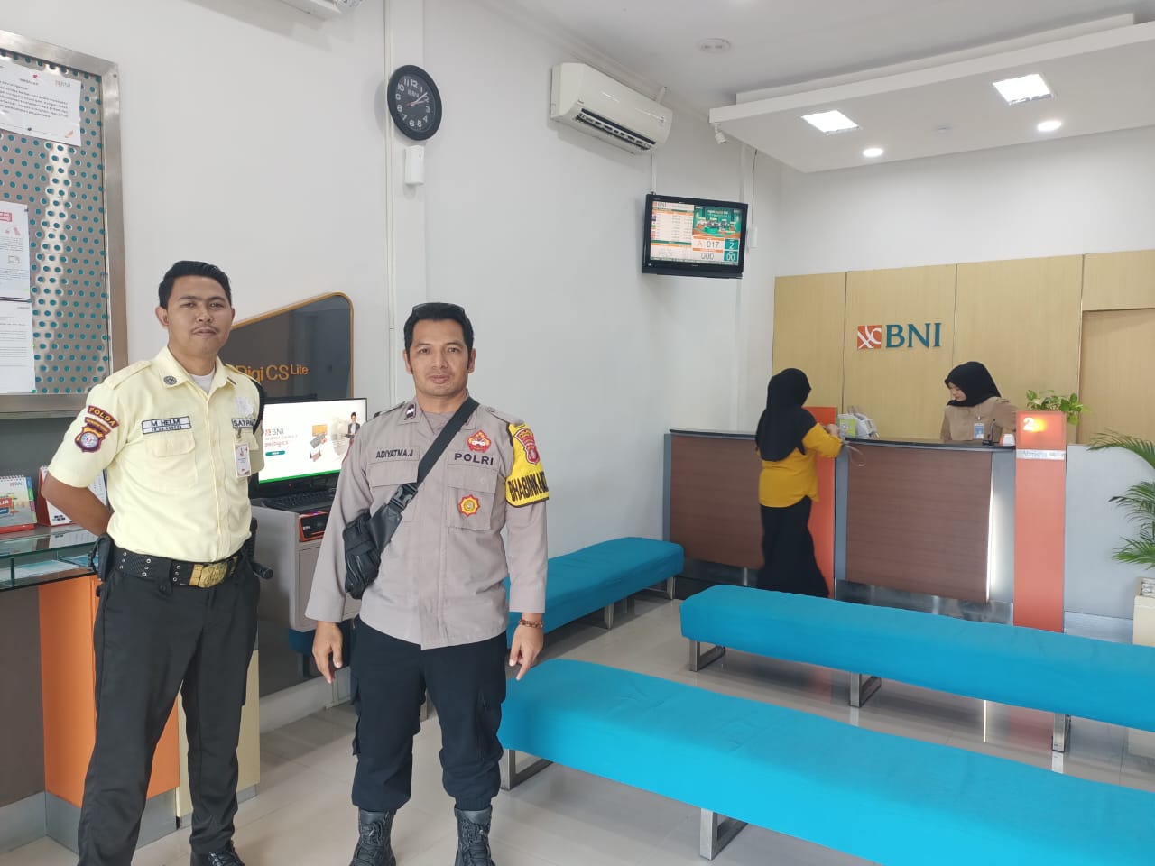 Kapolsek Jaya Karya Ipda Fauzi Alamsyah, S.H menjelaskan Polri senantiasa hadir di tengah-tengah masyarakat guna memberikan rasa aman dan nyaman kepada masyarakat yang sedang melakukan aktifitas sehari-hari dan transaksi perbankkan di Bank BNI khususnya untuk menekan serta meminimalisir terjadinya tindak kejahatan di Kec. Mentaya Hilir Selatan.