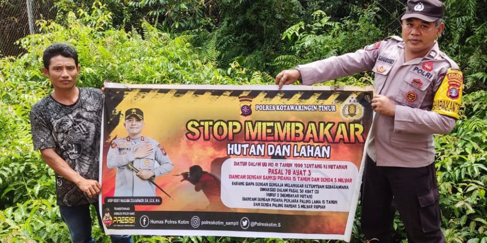 Sosialisasi dilakukan Bhabinkamtibmas Polsek Cempaga Aiptu Handoko dengan membentangkan spanduk larangan membakar hutan dan lahan, disamping itu juga menghimbau kepada warga agar tidak membuka lahan atau kebun dengan cara membakar serta mengajak masyarakat untuk membantu Polri dalam mencegah terjadinya kebakaran hutan dan lahan, kegiatan tersebut bertempat di Desa Cempaka Mulia Barat Kecamatan Cempaga Kabupaten Kotim – Kalteng.