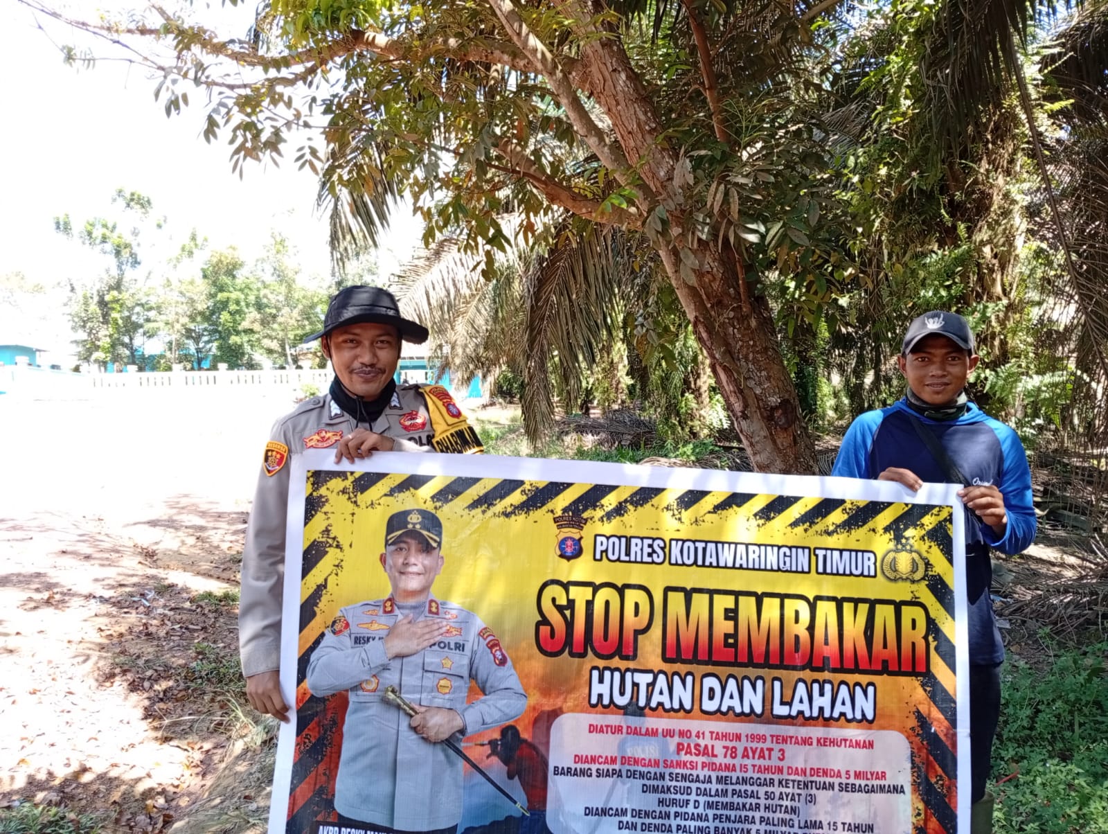 Sosialisasi dilakukan Bhabinkamtibmas Polsek Cempaga Brigpol Mulyadi dengan membentangkan spanduk larangan membakar hutan dan lahan, disamping itu juga menghimbau kepada warga agar tidak membuka lahan atau kebun dengan cara membakar serta mengajak masyarakat untuk membantu Polri dalam mencegah terjadinya kebakaran hutan dan lahan, kegiatan tersebut bertempat di Desa Cempaka Mulia Barat Kecamatan Cempaga Kabupaten Kotim – Kalteng.