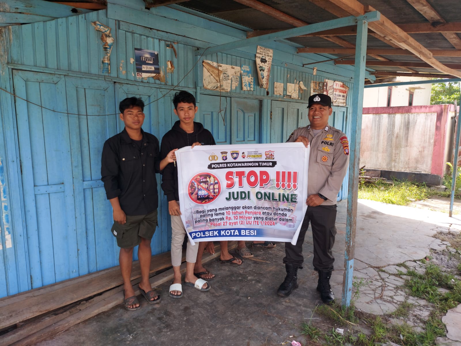 Polsek Kota Besi jajaran polres Kotim Polda Kalteng, dalam rangka Menyampaikan himbauan bahaya judi online ke warga di Kecamatan Kota Besi. Selasa,(18/11/2025) Pagi